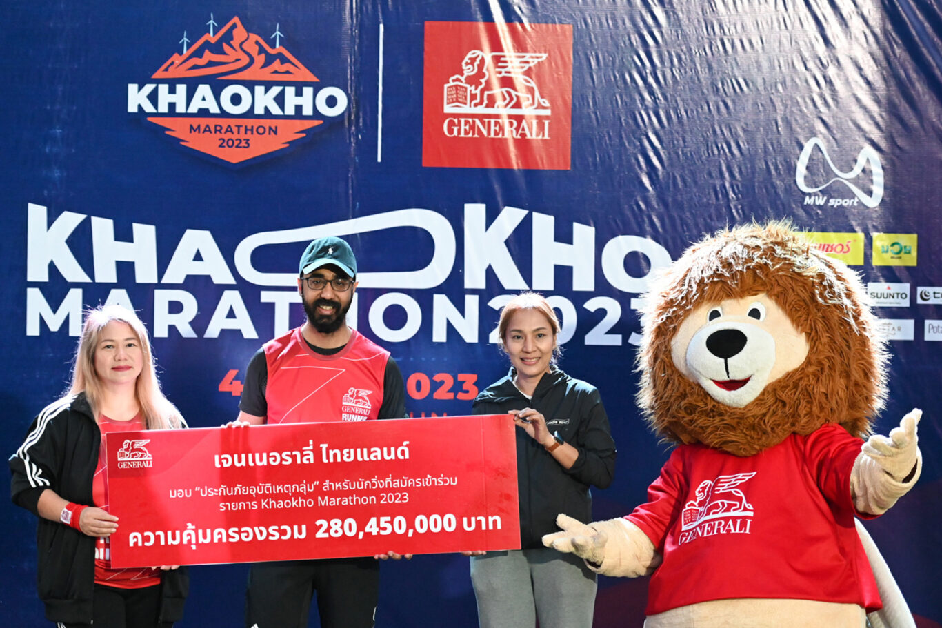 โดย นายอาร์ช กล่าวว่า “กลุ่มบริษัท เจนเนอราลี่ ไทยแลนด์ มีความยินดี และต้องการสนับสนุนให้ทุกคนใส่ใจดูแลสุขภาพของตนเอง ซึ่งเป็นพื้นฐานที่สำคัญที่สุด เพื่อที่จะสามารถดูแลคนรอบตัวและสังคมต่อไป” และในฐานะที่เป็นผู้สนับสนุนหลัก ยังได้มอบประกันภัยอุบัติเหตุกลุ่ม วงเงินความคุ้มครองรวม 280,450,000 บาท ให้แก่นักวิ่งในงาน โดยมี นางสาวปาลีรัตน์ โคตรชัย ตัวแทนผู้จัดงาน บริษัท เอ็มดับบลิว สปอร์ต จำกัด เป็นตัวแทนรับมอบ