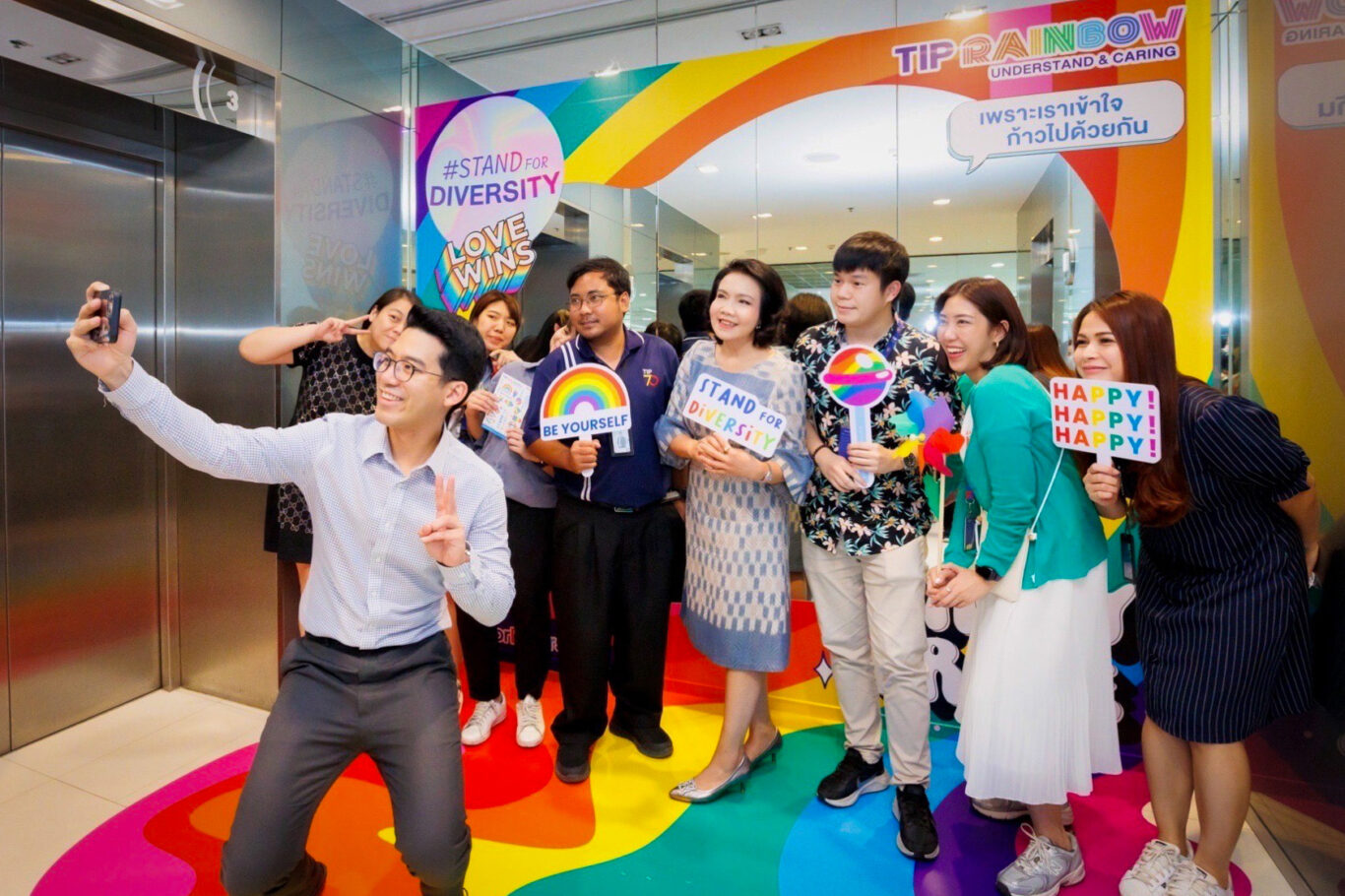 นางสาวนงลักษณ์ เอี่ยมโชติ รองกรรมการผู้จัดการใหญ่ด้านบริหาร บริษัท ทิพยประกันภัย จำกัด (มหาชน) ส่งมอบความสุขและร่วมฉลอง Pride Month ภายใต้ Concept Stand for Diversity ให้แก่พนักงานและลูกค้า ทิพยประกันภัยมอบความสุขแก่พนักงาน โดยการเปิดกว้างให้พนักงานสามารถแสดงออกได้อย่างอิสระ ทั้งทางด้านความคิด ความสามารถแบบไม่จำกัดเพศ อายุ และจัดพื้นที่กิจกรรมเพื่อเติมเต็มให้เป็นองค์กรแห่งความสุข