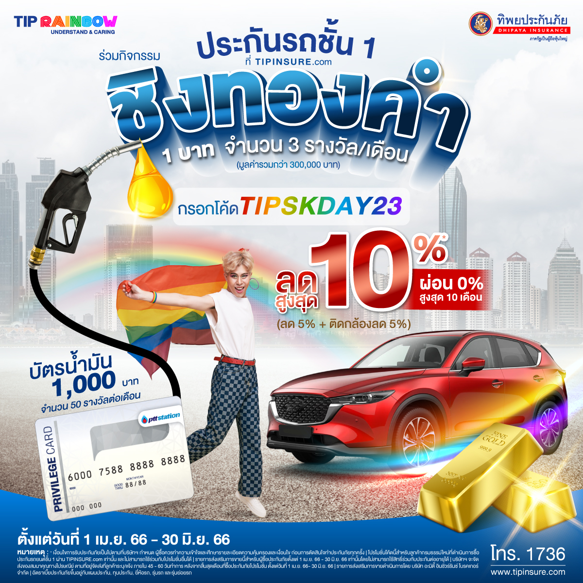 นอกจากนี้ยังได้มอบสิทธิพิเศษสำหรับลูกค้าใหม่ที่ซื้อผลิตภัณฑ์ประกันภัย TIP Rainbow ประกันภัยที่เข้าใจความหลากหลาย ทุกแผนความคุ้มครองตลอดเดือนมิถุนายน ผ่านช่องทางออนไลน์ www.tipinsure.com