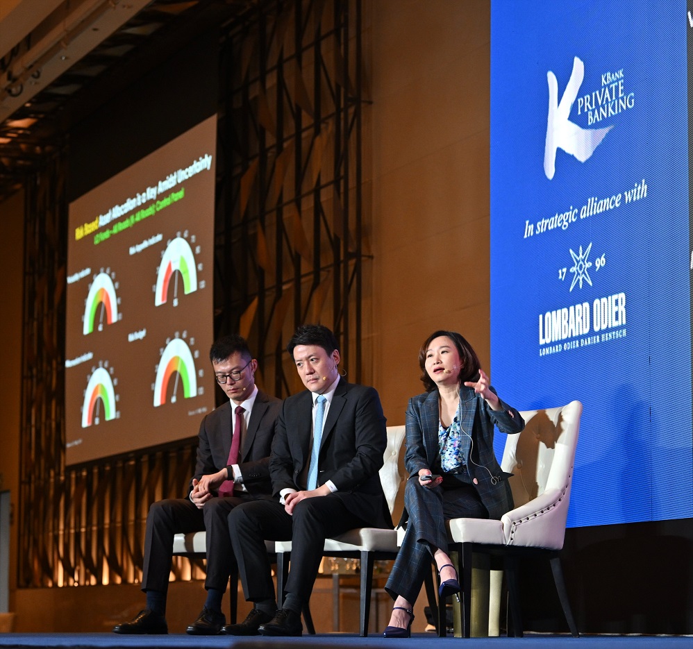 KBank Private Banking ร่วมกับ Lombard Odier พันธมิตรทางธุรกิจไพรเวทแบงก์ระดับโลก จากสวิตเซอร์แลนด์ จัดงานสัมมนาในหัวข้อ Beyond the Numbers: Decoding the Economic Outlook ประเมินเศรษฐกิจโลกยังคงต้องเผชิญกับความท้าทายระยะสั้น ทั้งจากการเติบโตทางเศรษฐกิจและอัตราเงินเฟ้อที่ชะลอตัวลง แต่ยังมีความหวังว่าเศรษฐกิจจะเติบโตได้ดีในระยะยาว แนะกลยุทธ์ปรับพอร์ตรับมือความท้าทายและรอคว้าโอกาสที่กำลังจะมาถึง ชูกองทุนผสมแบบ Risk-Based และสินทรัพย์ทางเลือกโดยเฉพาะสินทรัพย์นอกตลาด ทั้งหุ้นนอกตลาด ตราสารหนี้นอกตลาด และอสังหาริมทรัพย์นอกตลาด ด้านศูนย์วิจัยกสิกรไทยมองเศรษฐกิจไทยกำลังเผชิญกับโจทย์ในระยะกลางถึงยาว แต่สถานการณ์ด้านการเมืองในประเทศ อาจส่งผลให้รัฐบาลต้องให้น้ำหนักไปที่โจทย์เฉพาะหน้ามากกว่า คงตัวเลข GDP ไทยปีนี้อยู่ที่ 3.7%