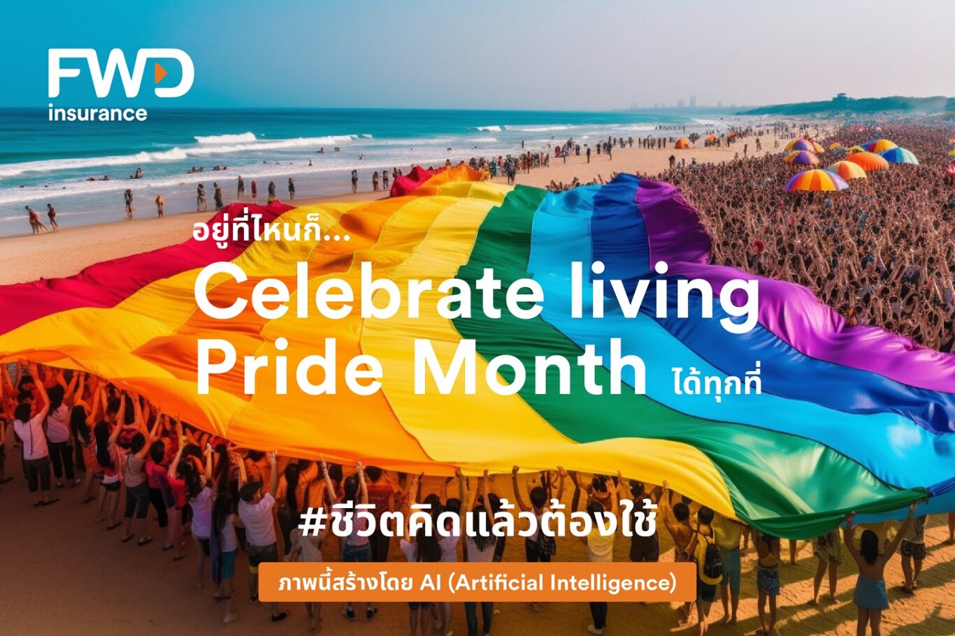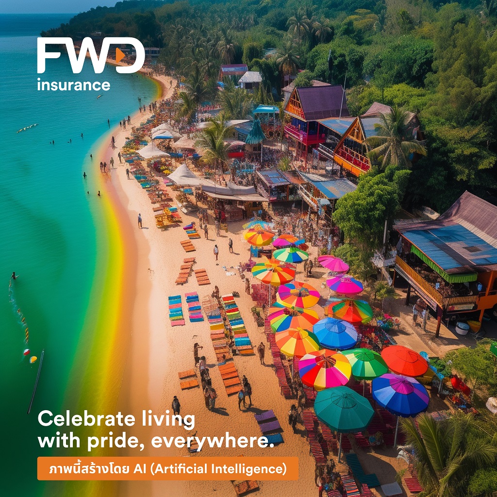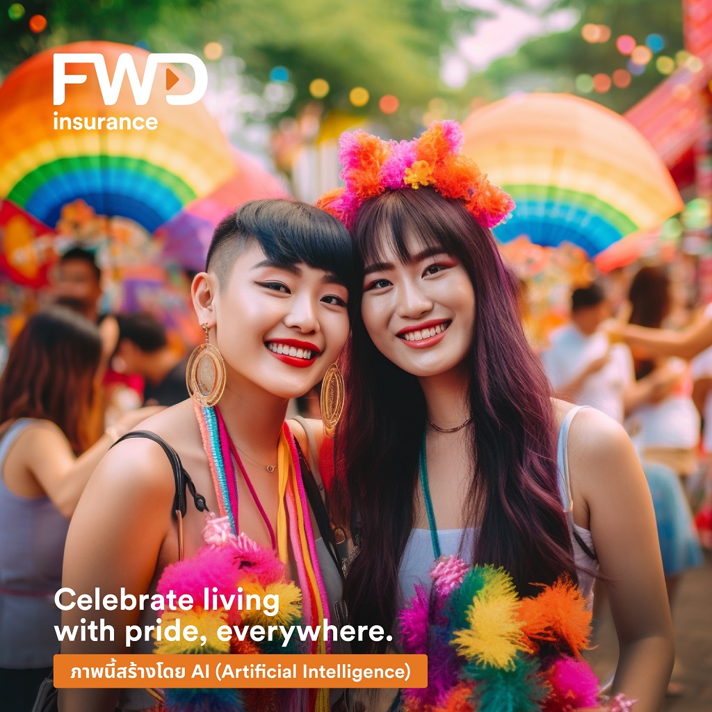 FWD ประกันชีวิต สร้างสรรค์การสื่อสารแบรนด์ด้วยความแตกต่างอย่างต่อเนื่อง ใช้เทคโนโลยี AI เป็นเจ้าแรกของวงการประกันชีวิต ต่อยอดกับแคมเปญ Celebrate living with Pride, everywhere ร่วมฉลอง Pride Month สร้างคอนเทนต์ซีรีส์ ไม่ว่าจะอยู่ที่ไหนในไทย ก็จัดงานฉลอง Celebrate Pride Month ได้ทุกที่ โดยมี FWD ประกันชีวิต สนับสนุนให้ทุกคนใช้ชีวิตได้ในแบบที่ต้องการ