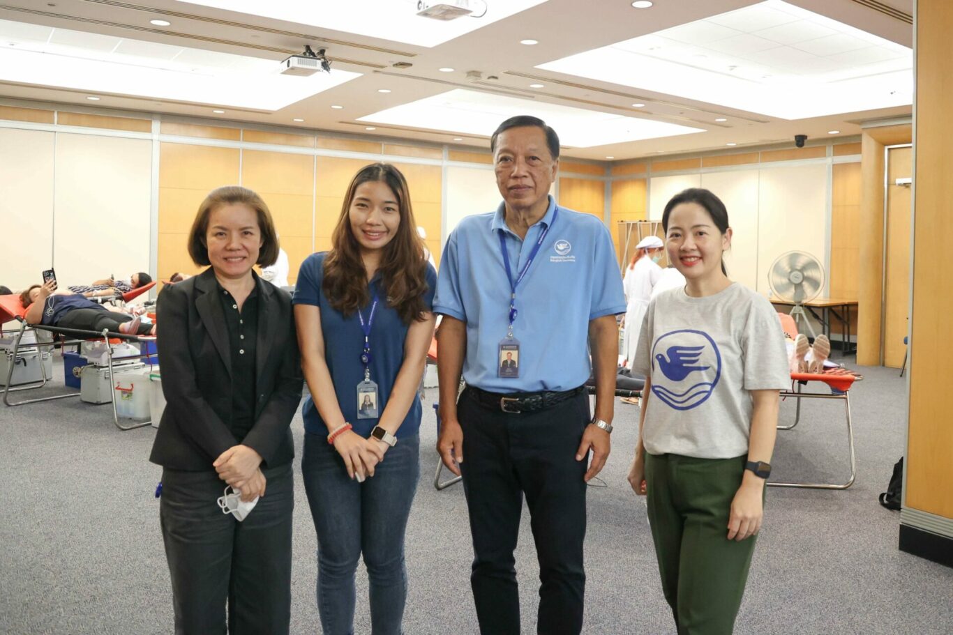 บริษัท กรุงเทพประกันภัย จำกัด (มหาชน) เห็นความสำคัญของการให้ โดยเฉพาะการให้โลหิตเพื่อสำรองอย่างเพียงพอต่อการรักษาผู้ป่วยในโรงพยาบาลต่างๆ จึงได้จัดโครงการบริจาคโลหิตให้แก่สภากาชาดไทยมาอย่างต่อเนื่อง โดยมี นายสุพัฒน์ อยู่คงพันธุ์ (ที่ 2 จากขวา) ผู้ช่วยกรรมการผู้อำนวยการใหญ่ ให้กำลังใจและขอบคุณพนักงาน ลูกค้า คู่ค้า ตลอดจนประชาชนทั่วไป ที่มาร่วมบริจาคโลหิตให้แก่สภากาชาดไทย ณ อาคารกรุงเทพประกันภัย สำนักงานใหญ่ เมื่อวันที่ 29 มิถุนายน 2566