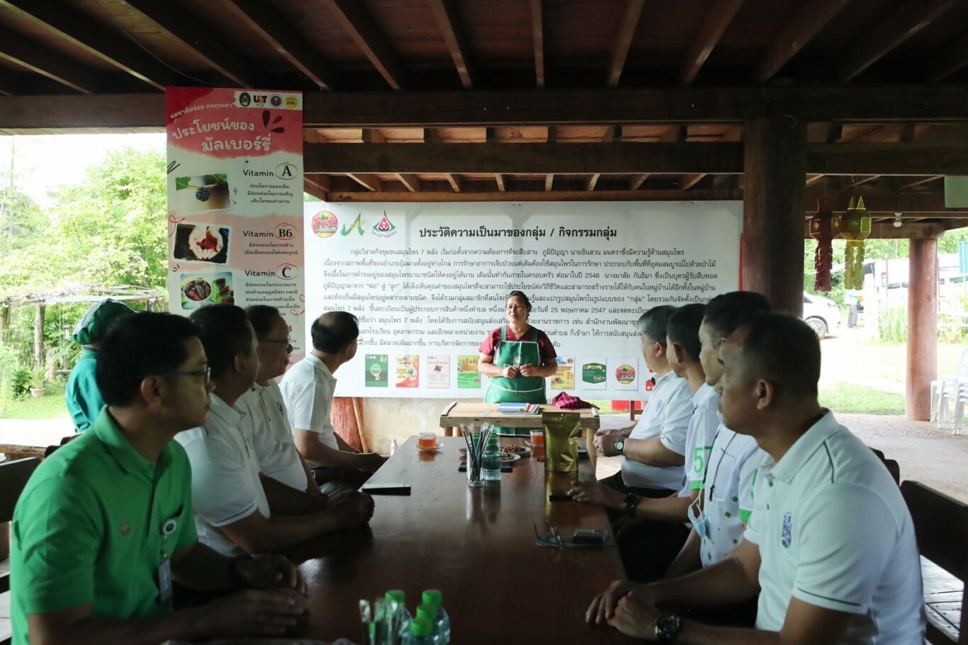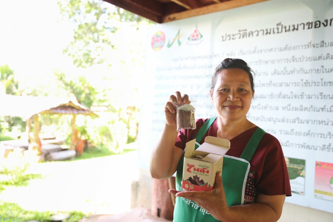 จากนั้นเดินทางไปเยี่ยมชมกลุ่มวิสาหกิจชุมชนสมุนไพร 7 พลัง ที่มีการสืบสานภูมิปัญญาพื้นบ้านด้านสมุนไพร โดยรวมกลุ่มสมาชิกในชุมชนที่สนใจเข้ามาเรียนรู้การใช้และแปรรูปสมุนไพร เพื่อเพิ่มมูลค่าและสร้างประโยชน์ใช้สอย และมีการจ้างงานคนในชุมชน ซึ่งถือเป็นการสร้างอาชีพและสร้างรายได้ให้กับคนในชุมชน