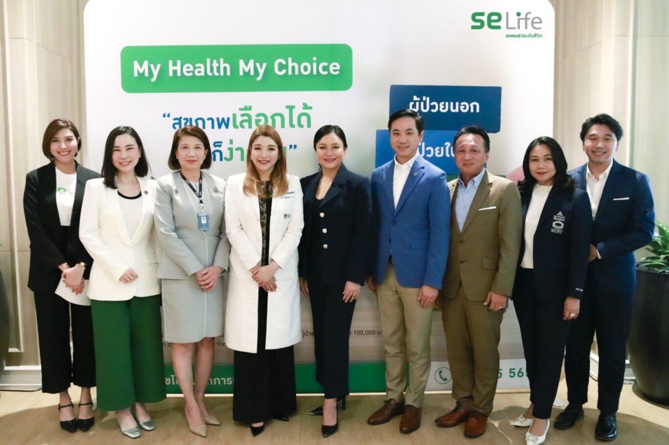 คณะผู้บริหาร บริษัท อาคเนย์ประกันชีวิต จำกัด (มหาชน) หรือ SE Life นำโดย นางภฤตยา สัจจศิลา กรรมการผู้จัดการ (กลาง) และ นายจิรวัฒน์ พฤกษ์ภูรีพงศ์ ผู้ช่วยกรรมการผู้จัดการ สายงานบริหารช่องทางลูกค้ารายใหญ่ (Wealth Management) (ที่ 4 จากขวา) นายพงษ์สันติ์ ไพศาลเจริญ ผู้อำนวยการบริหารช่องทางลูกค้ารายใหญ่ (Executive Wealth Director) (ที่ 3 จากขวา) พร้อมด้วยคณะผู้บริหาร บีดีเอ็มเอส เวลเนส คลินิก (BDMS Wellness Clinic) นำโดย แพทย์หญิงสร้อยเพชร ประเทืองเศรษฐ์ ผู้อำนวยการคลินิกสุขภาพเชิงป้องกันและฟื้นฟู (ที่ 4 จากซ้าย) นางสาวศิริพร ไทรกุล ผู้ช่วยผู้อำนวยการและผู้อำนวยการฝ่ายปฎิบัติการทางคลินิก (ที่ 3 จากซ้าย) และ นางสาวธาริดา คิวสุวรรณ ผู้อำนวยการฝ่ายการตลาด (ที่ 2 จากซ้าย) ร่วมจัดงาน “Health is Wealth Talk: Lifestyle Medicine ปรับวิถีชีวิต เพื่อพิชิตสุขภาพดีอย่างยั่งยืน” เพื่อให้ความรู้ด้านสุขภาพเชิงป้องกันแก่ลูกค้า ให้สามารถนำไปปรับใช้ในชีวิตประจำวัน และจุดประกายให้ลูกค้าหันมาใส่ใจเรื่องของการดูแลสุขภาพแบบองค์รวม เพื่อเตรียมรับมือกับความเสี่ยงด้านสุขภาพและความมั่นคงในชีวิต ที่มาพร้อมกับ Ageing Society และ Longevity Risk ณ บีดีเอ็มเอส เวลเนส คลินิก ถนนวิทยุ กรุงเทพฯ