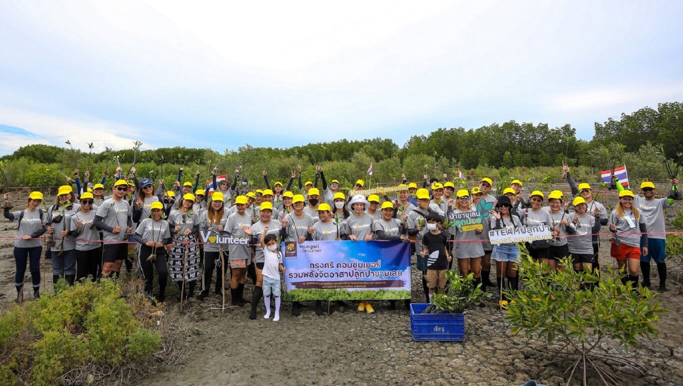 กรุงเทพฯ, 4 กรกฎาคม 2566 – กรุงศรี คอนซูมเมอร์ ผู้นำในธุรกิจบัตรเครดิตและสินเชื่อส่วนบุคคล นำทีมผู้บริหารและพนักงานจิตอาสาร่วมปลูกป่าชายเลนกับกิจกรรม ‘กรุงศรี คอนซูมเมอร์ เรซ ทู เน็ท ซีโร่’ (Krungsri Consumer Race to Net Zero) ณ ศูนย์ประสานงานเพื่อการอนุรักษ์ป่าชายเลนกองทัพบก (ภาคกลาง) ต.หาดเจ้าสำราญ อ.เมือง จ.เพชรบุรี เพื่อร่วมสานต่อเป้าหมายในการลดคาร์บอนให้เป็นศูนย์ ตามวิสัยทัศน์การอนุรักษ์สิ่งแวดล้อมของกรุงศรี กรุ๊ป โดยพนักงานจิตอาสาได้ร่วมกันปลูกต้นไม้รวม 500 ต้น เทียบเท่าการลดคาร์บอนได้รวม 4,500 กิโลกรัมคาร์บอน