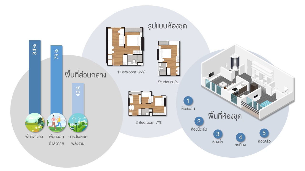 และไม่น้อยกว่า 40% ให้ความสำคัญกับสิ่งอำนวยความสะดวกที่เกี่ยวข้องกับการประหยัดพลังงาน อาทิ EV Charger และการติดตั้ง Solar Cell เพื่อการประหยัดพลังงาน