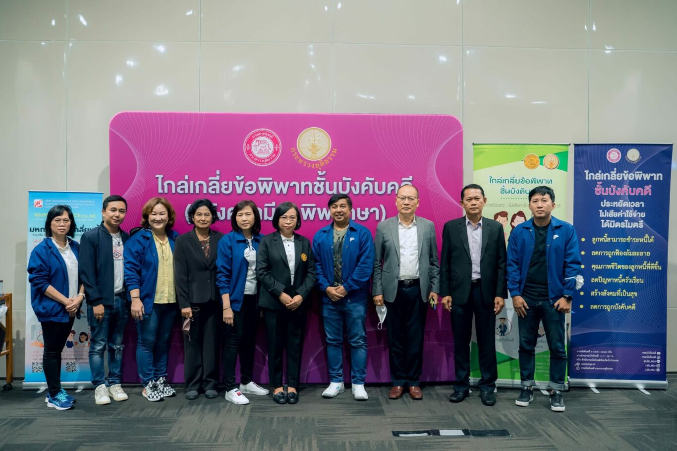 นายพีระพงศ์ พิตรพิบูลพาทิศ (ที่ 7 จากซ้าย) รองผู้บริหารสูงสุด สายงานสำนักกรรมการและประธานเจ้าหน้าที่บริหาร “เคทีซี” หรือ บริษัท บัตรกรุงไทย จำกัด (มหาชน) และ บริษัท กรุงไทยลีสซิ่ง จำกัด พร้อมด้วยตัวแทนผู้ให้บริการติดตามหนี้ของเคทีซี บริษัท วินเพอร์ฟอร์มานซ์ จำกัด ได้ร่วมกับ กรมบังคับคดี โดย นางดวงจันทร์ สุขแสง (ที่ 6 จากซ้าย) ผู้อำนวยการสำนักงานบังคับคดี จังหวัดสงขลา จัดมหกรรมไกล่เกลี่ยข้อพิพาทชั้นบังคับคดี ครั้งที่ 2/2566 ณ โรงแรม ลีการ์เดนส์ พลาซ่า อำเภอหาดใหญ่ จังหวัดสงขลา
