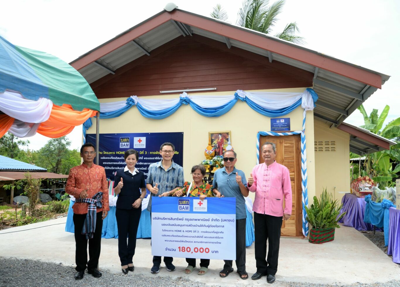 นายวีรเวช ศิริชาติไชย รองประธานเจ้าหน้าที่บริหาร นางสาวจิราพร ประเสริฐศรี ผู้อำนวยการฝ่ายพัฒนาสินทรัพย์ภาคตะวันออกเฉียงเหนือ นางสาวรัตนมณี บุญยืน รักษาการผู้จัดการสำนักงานนครราชสีมา และพนักงานบริษัทบริหารสินทรัพย์ กรุงเทพพาณิชย์ จำกัด (มหาชน) หรือ BAM พร้อมด้วย นายสมบัติ ไตรศักดิ์ รองผู้ว่าราชการจังหวัดชัยภูมิ นางบุษดี สุวรรณรัตน์ นายกเหล่ากาชาดจังหวัดชัยภูมิและองค์กรปกครองส่วนท้องถิ่น ร่วมส่งมอบบ้าน BAM