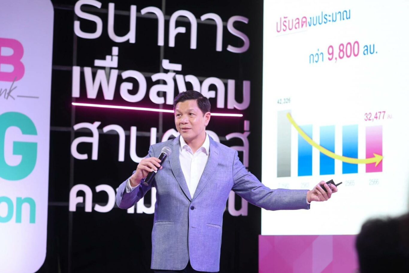 G : Governance ธนาคารดำเนินกิจการอย่างโปร่งใสและตรวจสอบได้ ยึดมั่นในการบริหารจัดการภายใต้หลักธรรมาภิบาล ผ่านกระบวนการปรับลดงบประมาณองค์กรลงเกือบ 25% ต่อปี โดยในปี 2566 ได้ลดการตั้งงบประมาณลงถึง 9,800 ล้านบาทต่อปี นอกจากการใช้งบประมาณอย่างประหยัดและคุ้มค่าแล้ว ยังมีการปรับกระบวนการจัดซื้อจัดจ้างใหม่ทั้งหมดเพื่อให้เกิดความเป็นธรรมและโปร่งใสในการทำธุรกิจ อีกทั้งยังสามารถเพิ่มศักยภาพความแข็งแกร่งของธนาคารโดยได้เพิ่มปริมาณเงินสำรองทั่วไปได้มากกว่า 46,000 ล้านบาทในระยะเวลาเพียง 3 ปี รวมถึงการสร้างวัฒนธรรมคุณธรรมในองค์กร รณรงค์ส่งเสริมต่อต้านการทุจริตและความโปร่งใสในการดำเนินงาน โดยธนาคารได้รับผลประเมิน ITA ปี 2565 ระดับสูงสุด 4 ปีติดต่อกัน
