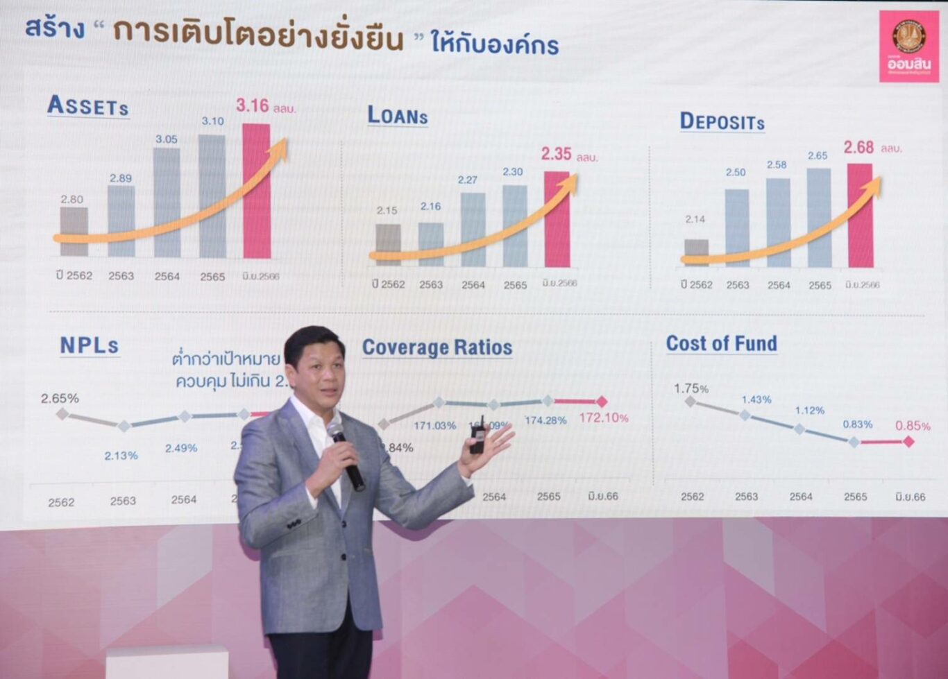 ทั้งนี้ ในครึ่งปีหลังของปี 2566 ธนาคารเตรียมออกมาตรการกระตุ้นเศรษฐกิจและแก้ปัญหาหนี้ครัวเรือนตามนโยบายกระทรวงการคลังและธนาคารแห่งประเทศไทย รวมถึงการเปิดตัวบริษัทนอนแบงก์ (Non Bank) ภายในไตรมาส 4 เพื่อเข้าแข่งขันลดดอกเบี้ยในตลาดสินเชื่อไม่มีหลักประกัน ที่จะสามารถให้บริการสินเชื่อรายย่อยได้ครอบคลุมความเสี่ยงที่สูงขึ้น เป็นแหล่งเงินทุนที่มีต้นทุนถูกลงและเป็นธรรม โดยใช้ Alternative Data อนุมัติสินเชื่อผ่านแอปพลิเคชันที่จะทำให้กระบวนการปล่อยสินเชื่อทำได้ง่ายขึ้น และการเร่งขยายเป้าหมายการปล่อยสินเชื่อของบริษัท มีที่ มีเงิน จำกัด ให้สามารถอนุมัติสินเชื่อได้ภายในปีนี้ 7,000 ล้านบาท นอกจากนี้ ยังมีแผนการดำเนินงานเพื่อสิ่งแวดล้อม สังคม และธรรมาภิบาลอีกหลากหลายโครงการ ที่ธนาคารจะเคลื่อนที่เร็วเพื่อยกระดับการดำเนินงาน ESG in Action สานต่อธนาคารเพื่อสังคมสู่เป้าหมายการพัฒนาที่ยั่งยืน.