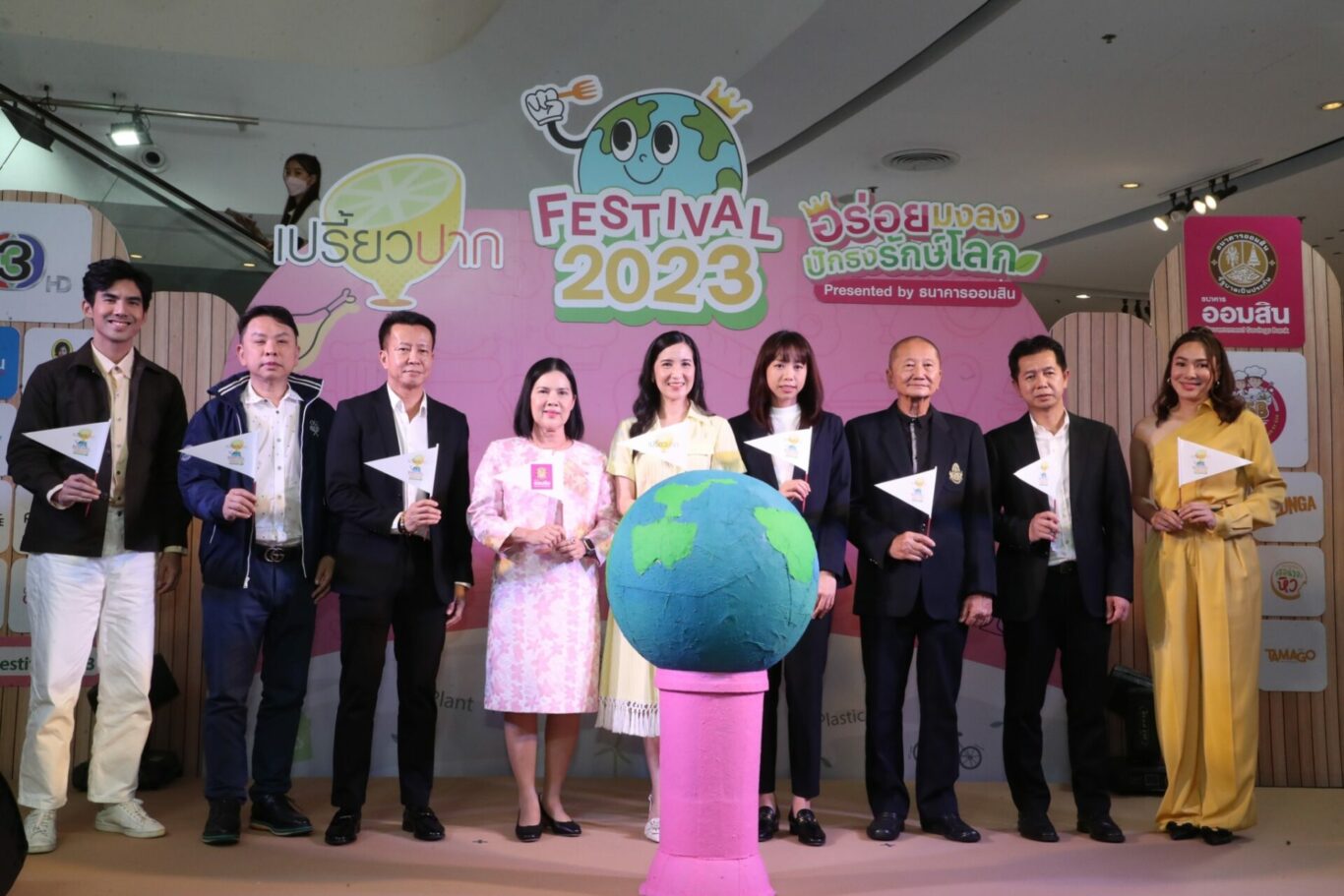 นางเบญจพร นิลรัต ผู้ช่วยผู้อำนวยการธนาคารออมสิน สายงานกิจการสาขา 2 และ นางสาวภริตา วิริยะรังสฤษฎ์ กรรมการผู้จัดการ บริษัท ไทม์ บรอดคาสท์ จำกัด ร่วมเปิดงาน “เปรี้ยวปาก Festival 2023 อร่อยมงลง ปักธงรักษ์โลก By ธนาคารออมสิน” ซึ่งจัดขึ้นระหว่างวันที่ 20 – 23 กรกฎาคม 2566