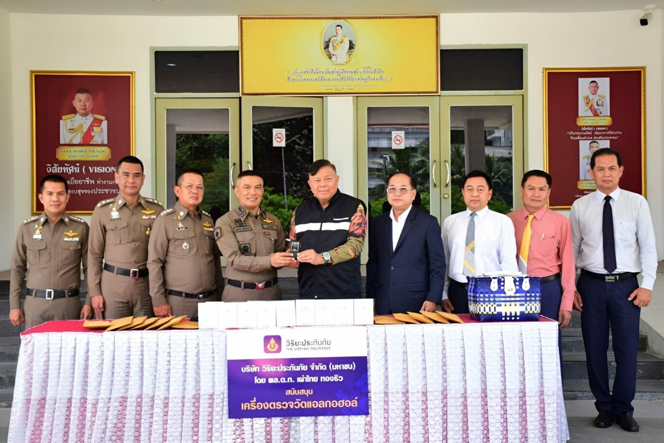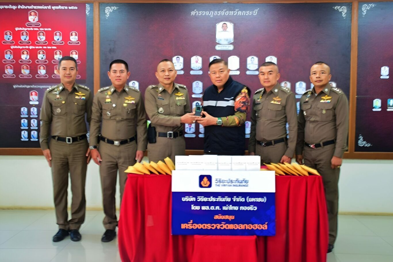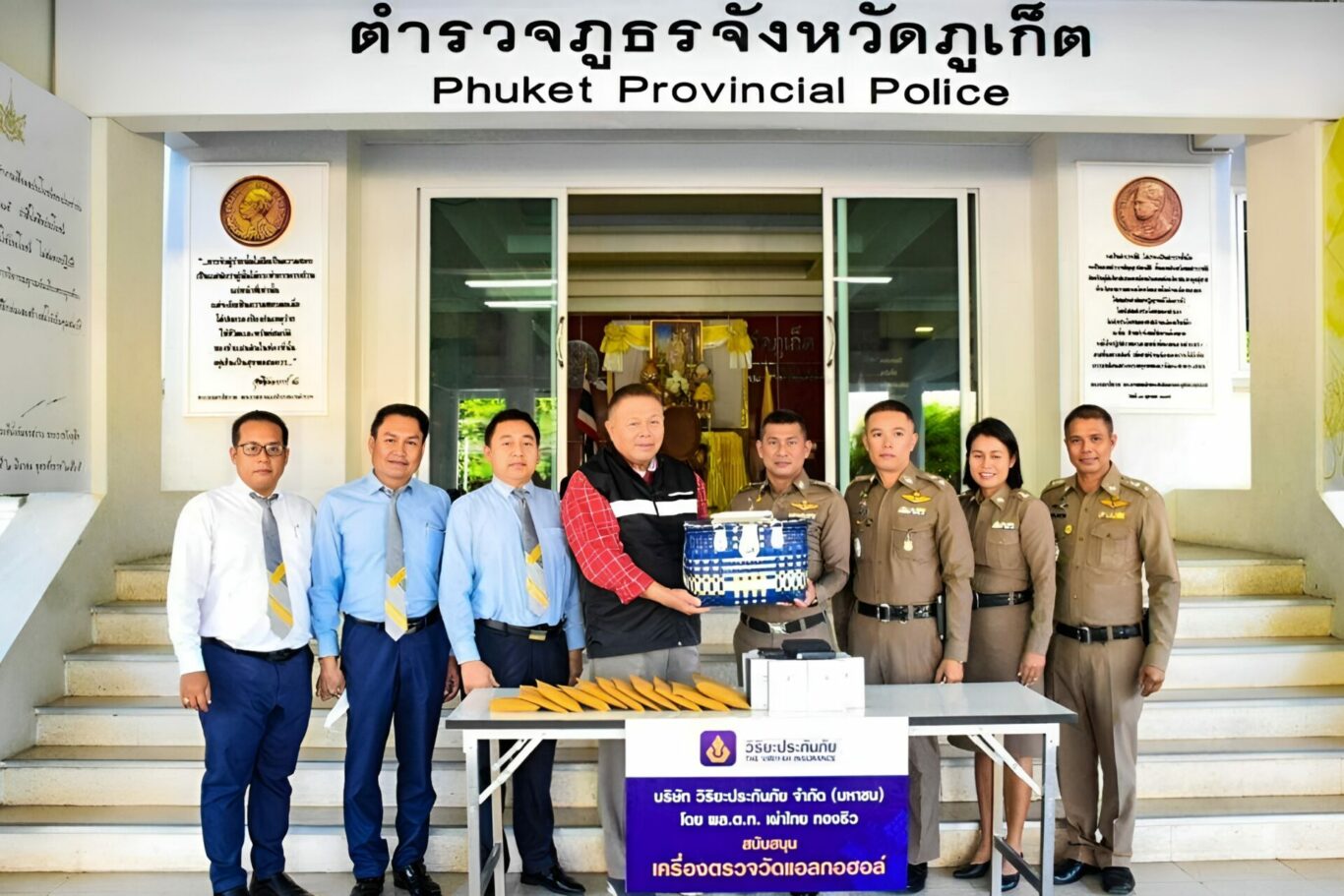 พล.ต.ท.เผ่าไทย ทองธิว กรรมการและที่ปรึกษา บริษัท วิริยะประกัน จำกัด (มหาชน) มอบเครื่องตรวจวัดแอลกอฮอล์ ให้แก่ พล.ต.ต.ณฐกรญ์ กาญจนาภรณ์ ผู้บังคับการตำรวจภูธรจังหวัดพังงา เพื่อสนับสนุนการปฏิบัติงานของเจ้าหน้าที่ตำรวจภูธรจังหวัดพังงาในการป้องกันและลดอุบัติเหตุบนท้องถนนอันเนื่องจากการขับขี่ยานพาหนะขณะมึนเมา ณ ตำรวจภูธรจังหวัดพังงา ถ.บริรักษ์บำรุง ต.ท้ายช้าง อ.เมือง จ.พังงา