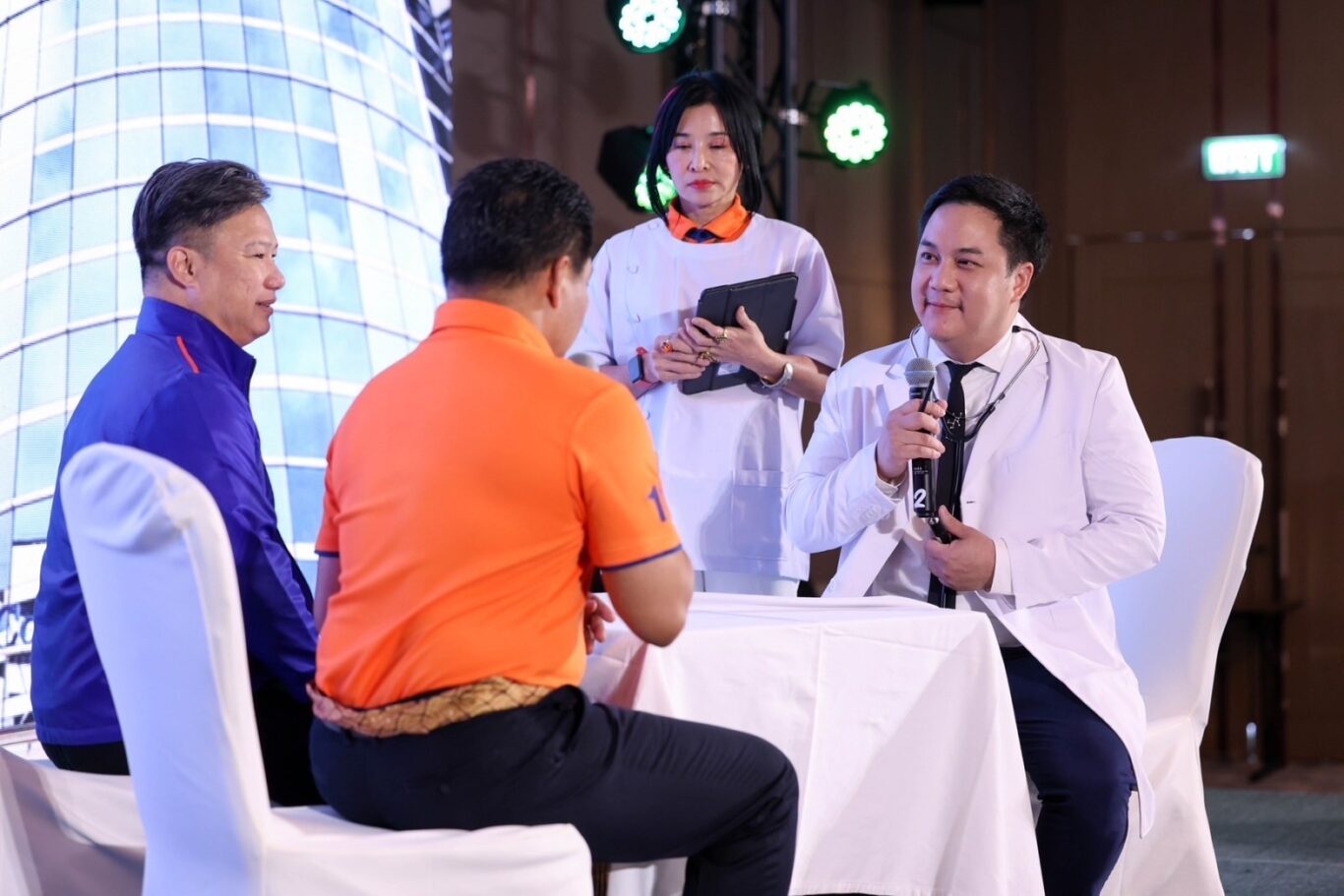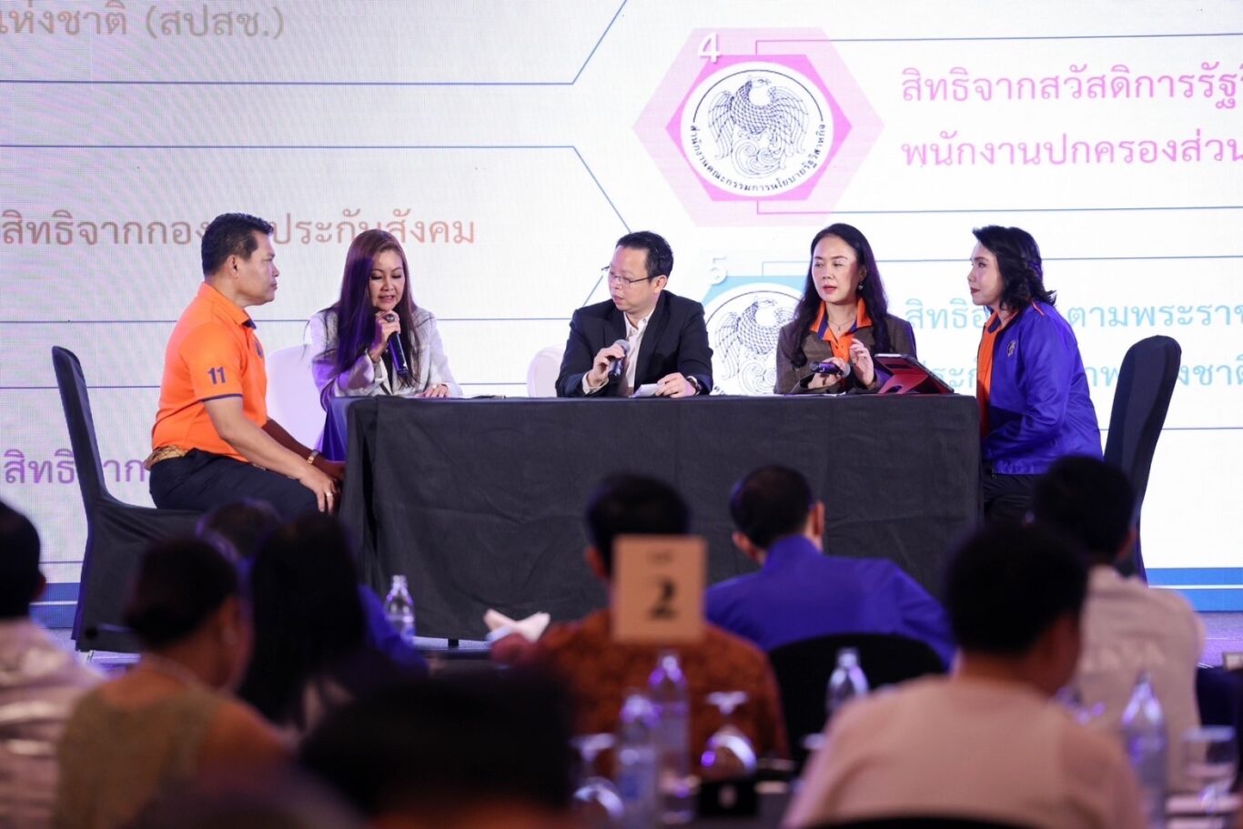 กลุ่มที่ 4 หัวข้อ “ผลิตภัณฑ์ประกันภัยเพื่อยกระดับการเข้าถึงประกันสุขภาพให้กับผู้ประกันตนในระบบประกันสังคม” ศึกษาแนวทางที่จะเพิ่มสิทธิประโยชน์ของผู้ประกันตนในระบบประกันสังคมให้มีความคุ้มครองที่เพิ่มขึ้นค่าใช้จ่ายที่น้อยลงสำหรับทั้งผู้ประกันตนและนายจ้าง ซึ่งการเลือกสิทธิให้แก่ลูกจ้างและตนเองในมาตรา 33 มาตรา 39 และมาตรา 40 ที่ต้องหาซื้อประกันภัยสุขภาพเพิ่มเติมที่จำเป็นต่อการรักษาพยาบาลอย่างเท่าเทียม รวมถึงสิทธิประโยชน์พิเศษที่สามารถเพิ่มได้ง่ายขึ้นหากใช้ระบบประกันภัยสุขภาพเอกชนเข้าไปช่วยระบบประกันสังคมในการบริหารความเสี่ยงด้านสุขภาพ ตลอดจนสร้างความร่วมมือทางด้านการให้บริการสุขภาพของประชากรไทย เพื่อยกระดับบริการด้านสินไหมและอำนวยความสะดวกให้แก่ประชาชนที่เข้ารับบริการในโรงพยาบาลทั้งแบบผู้ป่วยนอกและผู้ป่วยในโดยไม่ต้องสำรองจ่ายค่ารักษาพยาบาลเพิ่มเติม เป็นการ ONTOP หรือผูกกับระบบประกันสังคมในระบบประกันสังคมจ่าย เอกชนจ่าย และใช้ศูนย์บริการสินไหมทดแทนเดียวกันและเป็นส่วนเพิ่มจากความคุ้มครองของประกันสังคมที่มีอยู่เดิมแต่ลดค่าใช้จ่ายทดแทนที่จะจ่ายในการประกันกลุ่ม ซึ่งจะทำให้ผู้ประกันตนได้สิทธิค่ารักษาที่เพิ่มขึ้นจากการซื้อประกันภัยเพิ่มเติมโดยที่ลดค่าใช้จ่ายจากการซื้อประกันภัยส่วนบุคคลลง และสามารถเลือกซื้อประกันภัยเพิ่มเพื่อรับความคุ้มครองตามเพดานที่ตนเองต้องการได้ รวมถึงสามารถเลือกโรงพยาบาลที่ตนเองต้องการได้เนื่องจากนำไปผูกกับระบบประกันสังคม