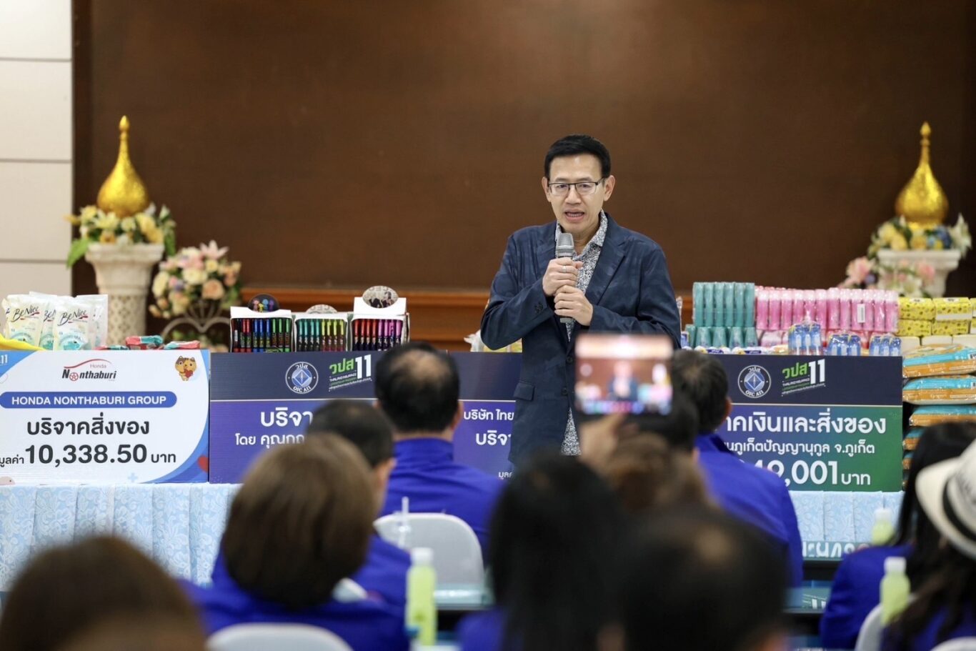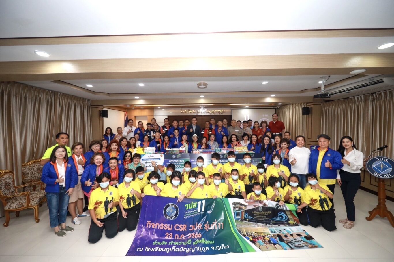 ต่อจากนั้นเลขาธิการ คปภ. ได้นำคณะผู้บริหารสำนักงาน คปภ. และนักศึกษา วปส. 11 ร่วมทำกิจกรรมเพื่อสังคม (Corporate Social Responsibility : CSR) โดยนำสิ่งของอุปโภคบริโภคของนักศึกษาที่ร่วมบริจาค ประกอบด้วย ข้าวสาร อาหารแห้ง น้ำดื่ม อุปกรณ์การเรียน เครื่องเขียน เป็นต้น และเงินร่วมบริจาค จำนวน 308,501 บาท ณ โรงเรียนภูเก็ตปัญญานุกูล เมื่อวันที่ 23 กรกฎาคม 2566