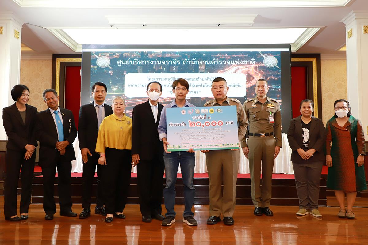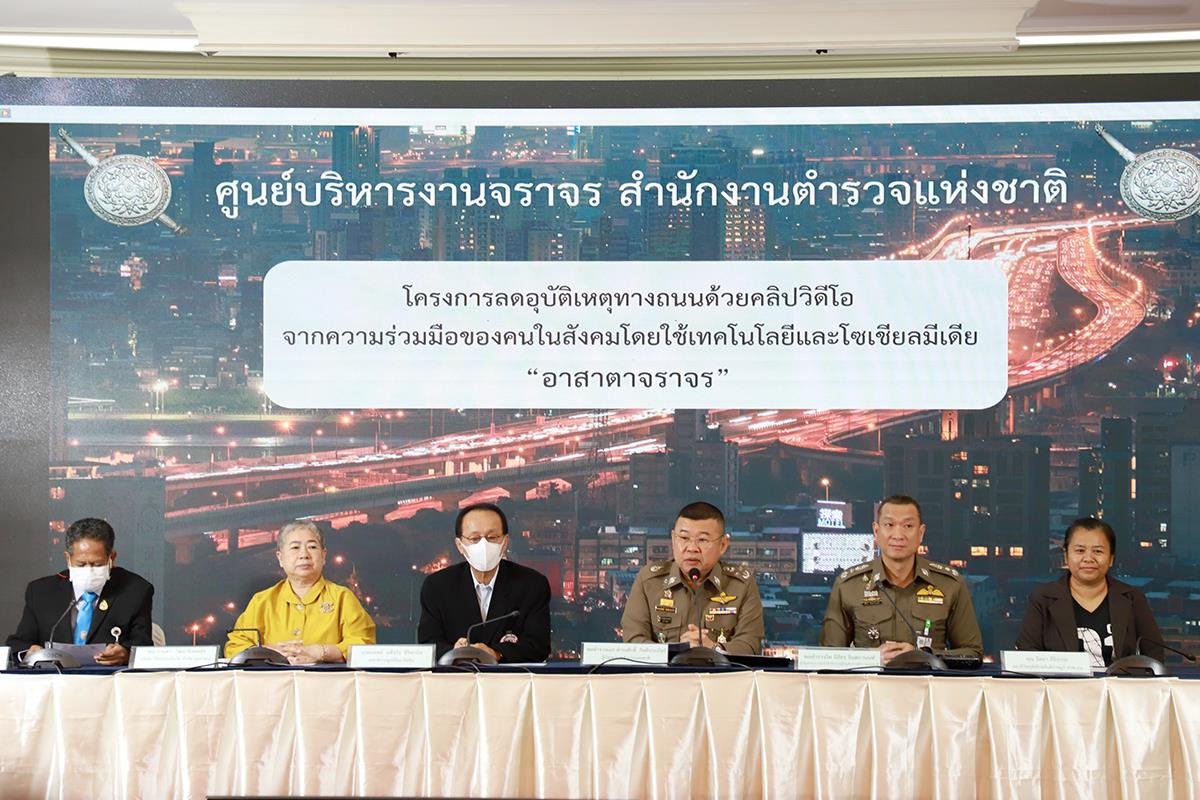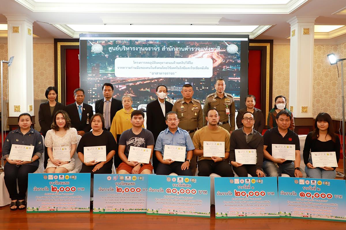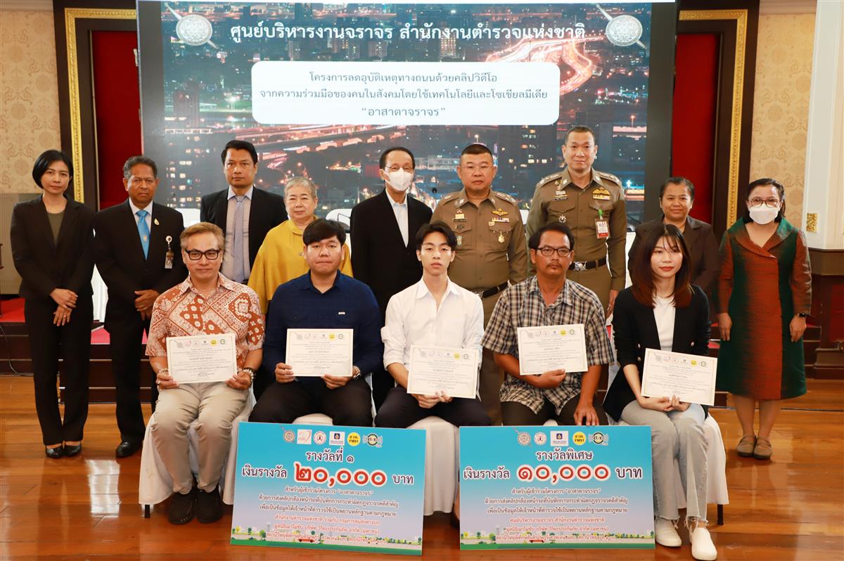 พล.ต.อ.ดำรงศักดิ์ กิตติประภัสร์ ผู้บัญชาการตำรวจแห่งชาติ พร้อมด้วย นางสาวกานดา วัฒนายิ่งสมสุข ที่ปรึกษาฝ่ายสื่อสารองค์กร ผู้แทนจาก บริษัท วิริยะประกันภัย จำกัด (มหาชน) นพ.แท้จริง ศิริพานิช เลขาธิการมูลนิธิเมาไม่ขับ และภาคีเครือข่าย กองทุนเพื่อความปลอดภัยทางถนน สวพ.91 และ จส.100 ร่วมแถลงผลการมอบรางวัลและเกียรติบัตร โครงการ “อาสาตาจราจร” ประจำเดือน มิถุนายน 2566 ให้กับเจ้าของคลิปที่ได้รับการคัดเลือก รวมจำนวนทั้งสิ้น 20 รางวัล และรางวัลพิเศษอีก 1 รางวัล รวมเป็นเงินรางวัลทั้งสิ้น 110,000 บาท ณ ห้องสารสิน สำนักงานตำรวจแห่งชาติ