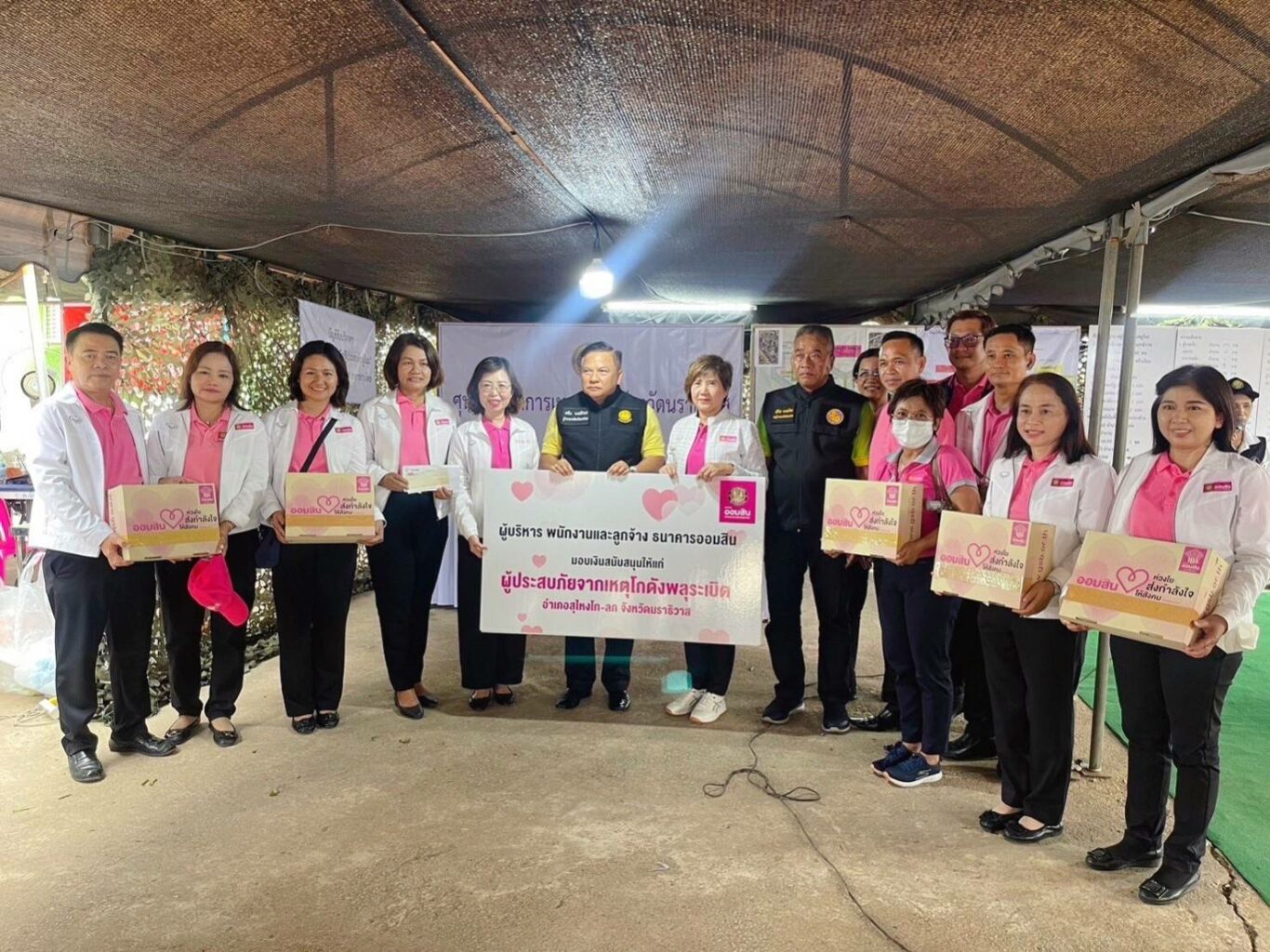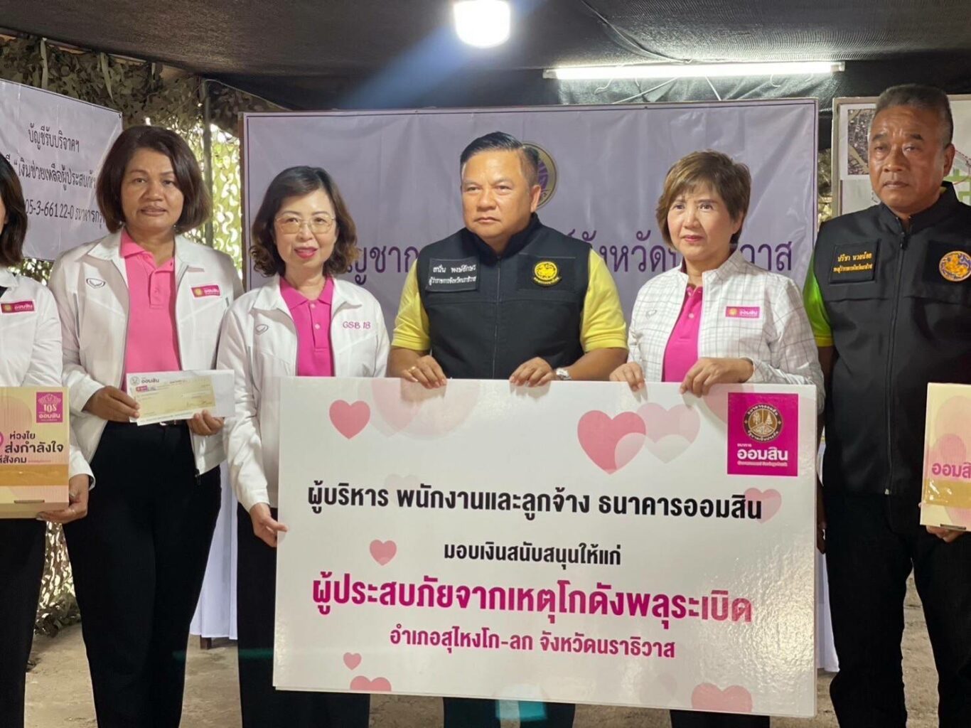 โดยมี นางพรอุทัย สมพงค์ ผู้อำนวยการภาคธนาคารออมสินภาค 18 และพนักงาน พร้อมด้วย พนักงานบริษัททิพยประกัยภัย ร่วมลงพื้นที่ช่วยเหลือและให้กำลังใจแก่ผู้ประสบภัยในโอกาสนี้ด้วย ณ พื้นที่ชุมชนตลาดมูโนะ ตำบลมูโนะ อำเภอสุไหงโกลก จังหวัดนราธิวาส.