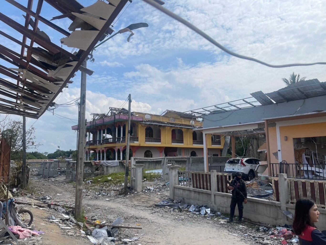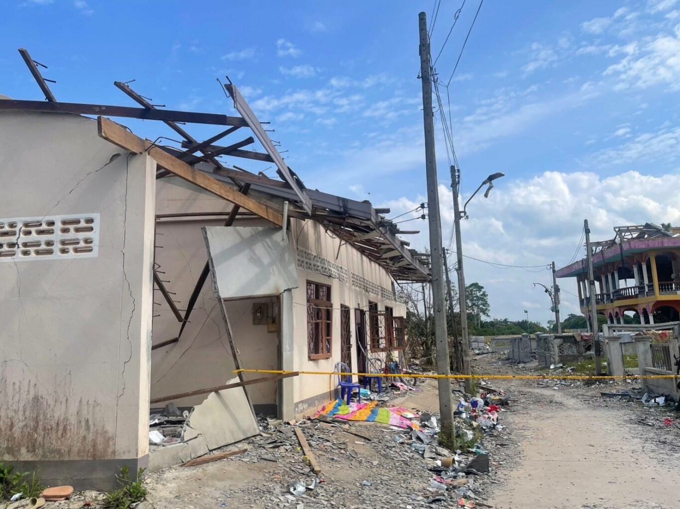 นางญดาภรณ์ ศรีพัฒน์ ผู้ช่วยผู้อำนวยการธนาคารออมสิน สายงานกิจการสาขา 6 ส่งมอบสิ่งของและเงินช่วยเหลือในเบื้องต้นจากธนาคารออมสิน ให้แก่ นายสนั่น พงษ์อักษร ผู้ว่าราชการจังหวัดนราธิวาส เพื่อนำไปช่วยเหลือผู้ประสบภัยเหตุโกดังเก็บดอกไม้ไฟระเบิด บริเวณตลาดมูโนะ ตำบลมูโนะ อำเภอสุไหงโกลก จังหวัดนราธิวาส