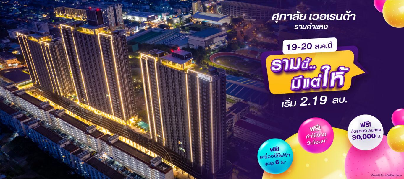 บริษัท ศุภาลัย จำกัด (มหาชน) จัดแคมเปญกระตุ้นความต้องการที่อยู่อาศัยให้กับลูกค้าที่กำลังมองหาคอนโดมิเนียมพร้อมอยู่ บนทำเลศักยภาพในช่วงไตรมาส 3 กับแอคทีฟคอนโดฯ ทำเลสุดปังติดรถไฟฟ้า “ศุภาลัย เวอเรนด้า รามคำแหง” ที่พร้อมเปิดห้องจริงให้ชมแล้วแถมยังจัดเต็มโปรโมชันสุดว้าวกับ รามนี้…มีแต่ให้ ในวันที่ 19 – 20 สิงหาคมนี้ จองภายในงาน รับความพิเศษฟรี ถึง 3 ต่อ ทั้ง ฟรี! ค่าใช้จ่ายวันโอน, ฟรี! บัตรทองคำ Aurora มูลค่า 30,000 บาท* และฟรี! ชุดเครื่องใช้ไฟฟ้า Samsung สูงสุด 6 ชิ้น* (เงื่อนไขเป็นไปตามที่บริษัทฯ กำหนด)