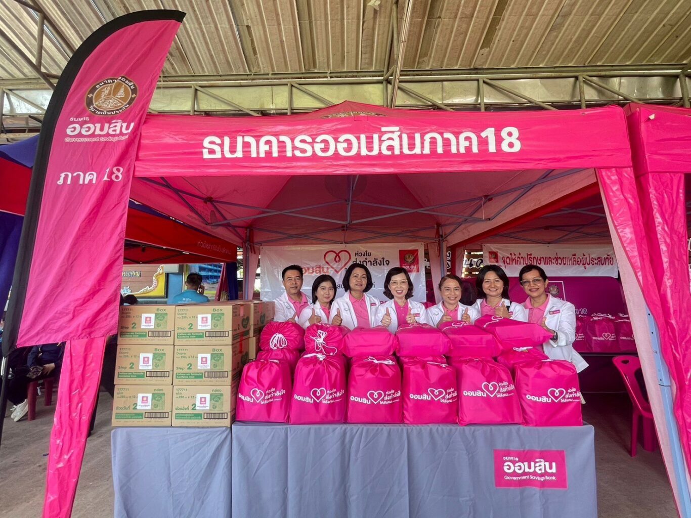 ทั้งนี้โดยมี นางญดาภรณ์ ศรีพัฒน์ ผู้ช่วยผู้อำนวยการธนาคารออมสิน สายงานกิจการสาขา 6 นางพรอุทัย สมพงค์ ผู้อำนวยการภาค ธนาคารออมสินภาค 18 และพนักงาน ร่วมลงพื้นที่ให้กำลังใจ พร้อมมอบความช่วยเหลือเพิ่มเติม ประกอบด้วย น้ำดื่ม เครื่องอุปโภคบริโภค และของใช้จำเป็นเพื่อบรรเทาความเดือดร้อนให้กับผู้ประสบภัย