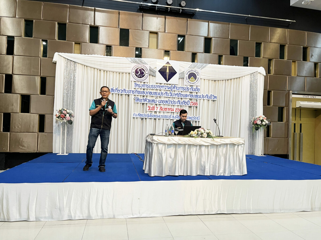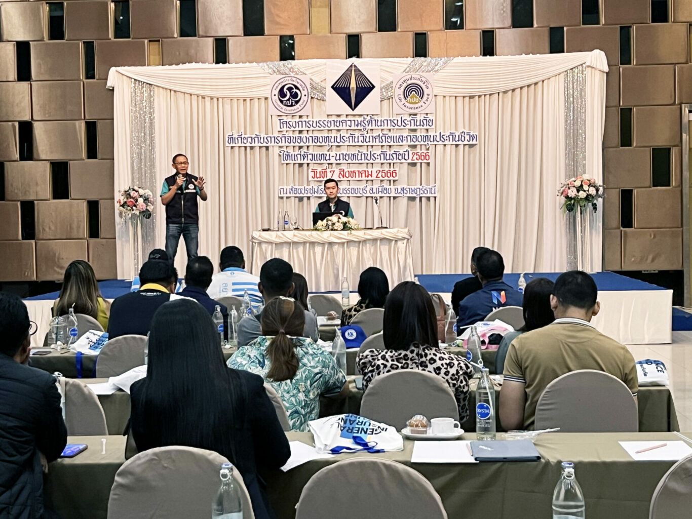 กองทุนประกันชีวิตร่วมบูรณาการกับกองทุนประกันวินาศภัยและสำนักงาน คปภ. ภาค 8 (สุราษฎร์ธานี) จัดโครงการบรรยายความรู้เกี่ยวกับประกันภัยให้แก่ตัวแทน -นายหน้าประกันภัย เมื่อวันที่ 7 สิงหาคม 2566 ณ ห้องประชุมโรงแรมบรรจงบุรี อำเภอเมือง จังหวัดสุราษฎร์ธานี