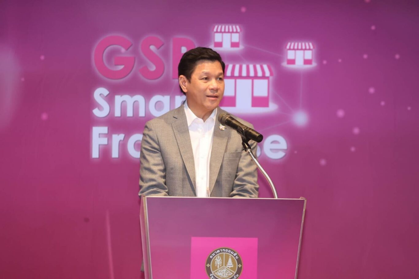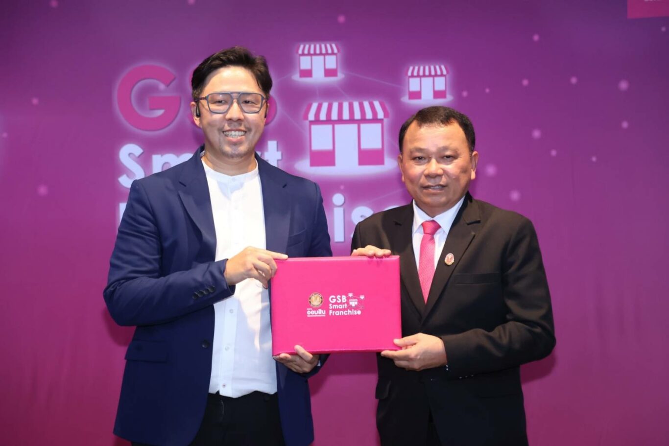 นายวิทัย รัตนากร ผู้อำนวยการธนาคารออมสิน แสดงความยินดีกับผู้ประกอบการ SMEs และ SMEs Startup ในพิธีมอบประกาศนียบัตรให้แก่ผู้ผ่านการอบรมหลักสูตร GSB Smart Franchise Standard 2023 รวมจำนวน 56 กิจการ