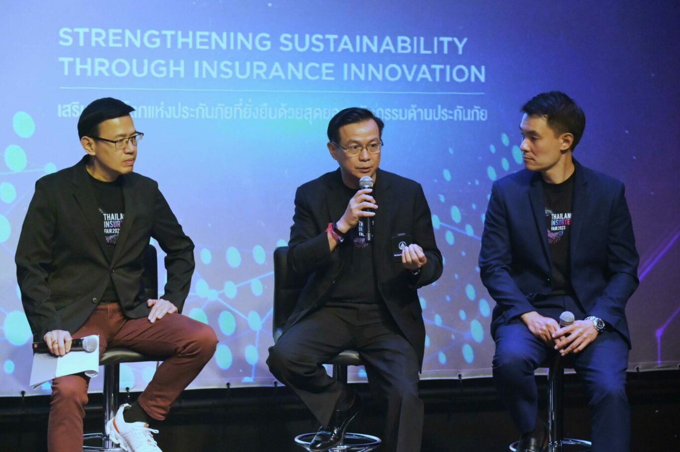 ดร.สมพร สืบถวิลกุล นายกสมาคมประกันวินาศภัยไทย ร่วมในการแถลงข่าวเพื่อประชาสัมพันธ์และเชิญชวนประชาชนเข้าร่วมงาน Thailand InsurTech Fair 2023 (TIF 2023) ภายใต้แนวคิด “Strengthening Sustainability Through Insurance Innovation – เสริมสร้างโลกแห่งประกันภัยที่ยั่งยืนด้วยสุดยอดนวัตกรรมด้านประกันภัย” พร้อมด้วย ดร.สุทธิพล ทวีชัยการ เลขาธิการคณะกรรมการกำกับและส่งเสริมการประกอบธุรกิจประกันภัย (คปภ.) นายสาระ ล่ำซำ นายกสมาคมประกันชีวิตไทย นางประภาพร ลิขสิทธิ์ นายกสมาคมตัวแทนประกันชีวิตและที่ปรึกษาการเงิน และ นายจิตวุฒิ ศศิบุตร นายกสมาคมนายหน้าประกันภัยไทย