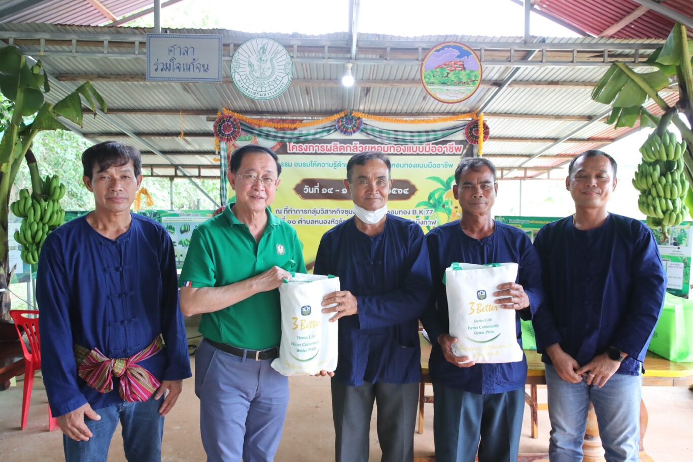 จากนั้นในวันที่ 13 สิงหาคม 2566 เยี่ยมชมงานวิสาหกิจชุมชนกล้วยหอมทอง BK 77 อำเภอพรเจริญ จังหวัดบึงกาฬ ลูกค้า ธ.ก.ส. ผู้ปลูกกล้วยหอมทองอินทรีย์พันธุ์ “กรอชมิชเชล” ซึ่งมีคุณสมบัติที่แตกต่างจากกล้วยหอมทองทั่วไปคือ เนื้อแน่น ทนต่อโรค สามารถยืดระยะเวลาสุกยาวนานขึ้น เพื่อลดความเสี่ยงด้านการขนส่ง