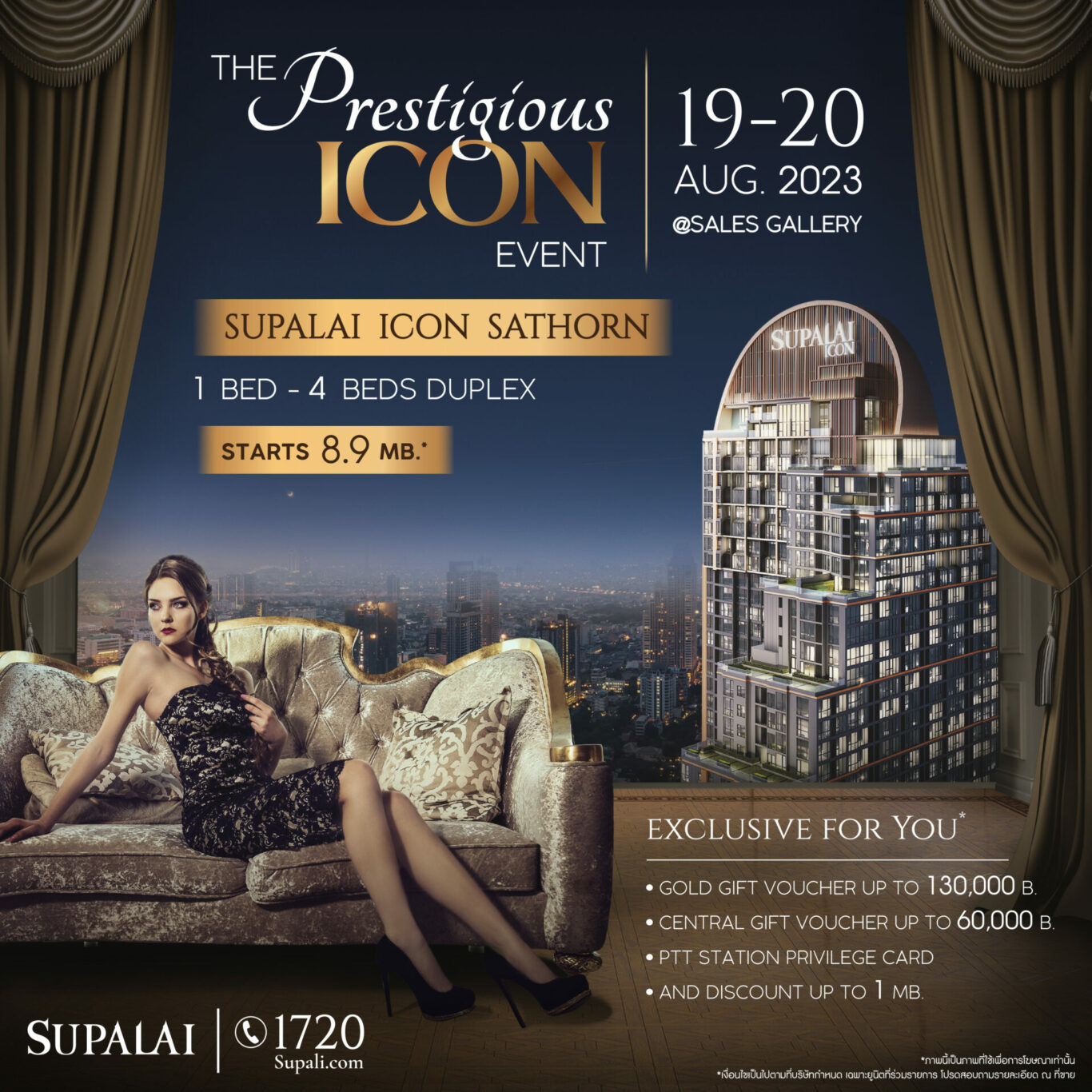 บริษัท ศุภาลัย จำกัด (มหาชน) เตรียมจัดงาน “The Prestigious Icon Even” เปิดประสบการณ์การใช้ชีวิตเรียบหรู บนทำเลใจกลางสาทร กับที่สุดของโครงการ Luxury Class “ศุภาลัย ไอคอน สาทร” เมกะโปรเจกต์สุดยิ่งใหญ่ สะท้อนการใช้ชีวิตที่เหนือระดับ จัดเต็มทุก Facilities เริ่มเพียง 8.9 ล้านบาท* พร้อมรับข้อเสนอสุดเอ็กซ์คลูซีฟเฉพาะงานนี้เท่านั้น พบกัน 19 – 20 สิงหาคม 2566