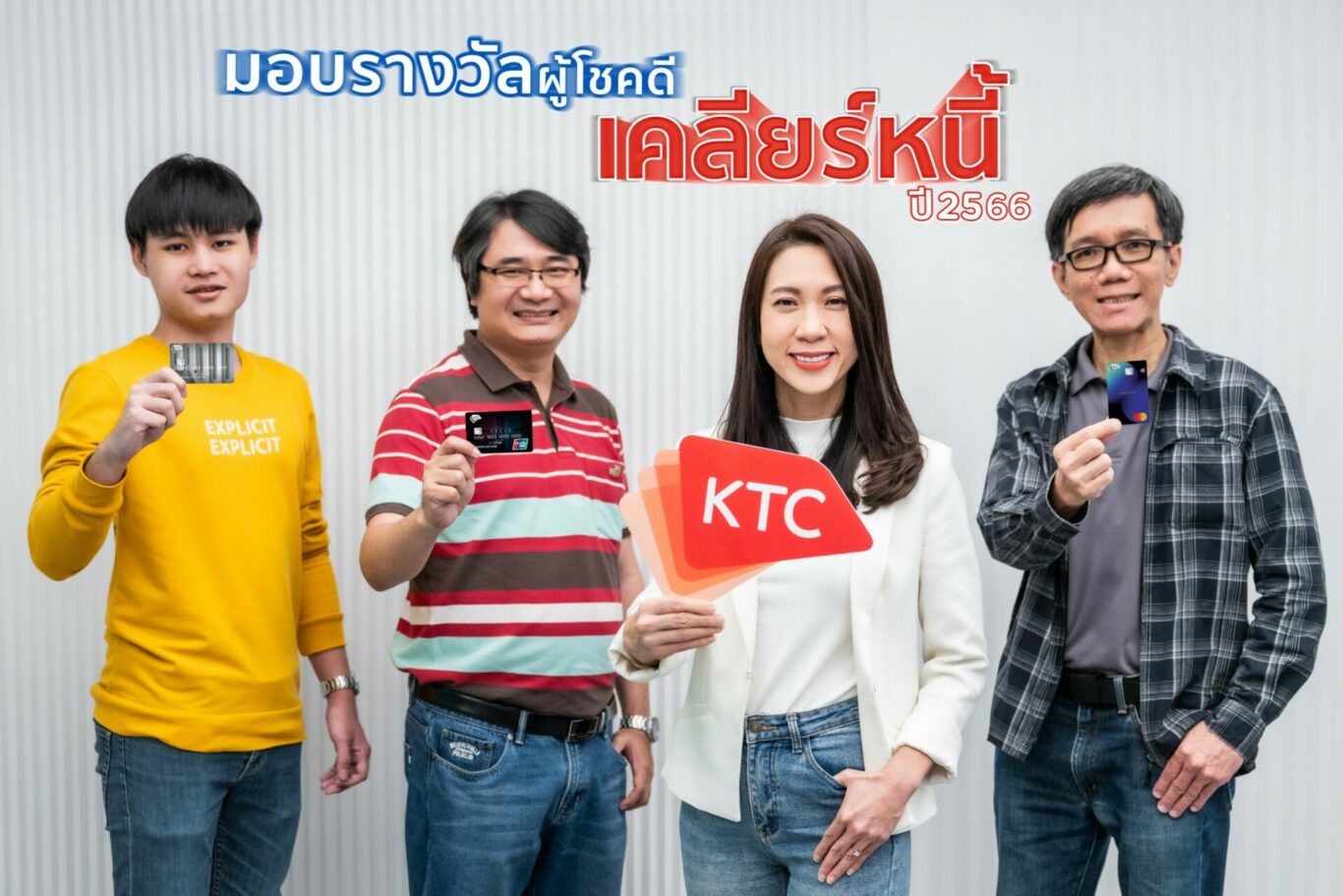 ที่จ่ายตรงและจ่ายดี ความพิเศษของโครงการฯ ในปี 2566 สมาชิกฯ จะได้รับสิทธิ์ร่วมลุ้นรางวัลตั้งแต่วันที่ 1 มกราคม 2566 – 31 ธันวาคม 2566 โดย รางวัลที่ 1 จะได้รับบัตรกำนัลส่วนลดค่าใช้จ่ายเพื่อเคลียร์หนี้ จำนวน 12 รางวัล (จับรางวัล 12 รอบๆ ละ 1 รางวัล) รางวัลที่ 2 จะได้รับบัตรกำนัลส่วนลดค่าใช้จ่าย เพื่อลดหนี้ จำนวน 588 รางวัล (จับรางวัล 12 รอบๆ ละ 49 รางวัล) สมาชิก “เคทีซี พราว” สามารถรับสิทธิ์เข้าร่วมโครงการเคลียร์หนี้ได้ โดยลงทะเบียนเพียงครั้งเดียว ก็สามารถลุ้นรับรางวัลได้ตลอดปี 2566 ผ่านเว็บไซต์ www.ktc.co.th/cleardebt66 หรือช่องทาง SMS พิมพ์ OK66 เว้นวรรคตามด้วยหมายเลขบัตรฯ 16 หลัก ส่งไปที่ 061-384-5000 สอบถามรายละเอียดเพิ่มเติมได้ที่ KTC PHONE 02 123 5000 กด 0 กด 2 สมัคร “เคทีซี พราว” คลิก https://ktc.today/KTC-PROUD สมัคร “เคทีซี พี่เบิ้ม รถแลกเงิน” คลิก https://ktc.today/PBerm-Apply