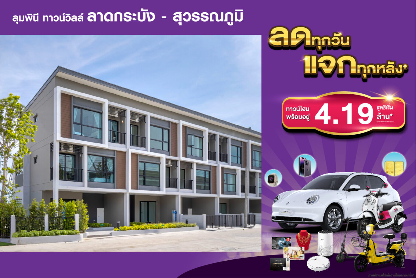 2.โครงการลุมพินี ทาวน์วิลล์ ลาดกระบัง – สุวรรณภูมิ ทาวน์โฮม และบ้านแฝดติดถนนใหญ่หลวงแพ่ง สุทธิเริ่ม 3.09-5.79 ล.บ.* ลงทะเบียนรับราคาพิเศษ