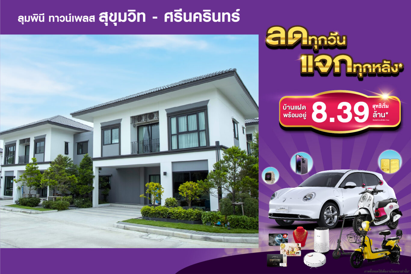 3.โครงการลุมพินี ทาวน์เพลส สุขุมวิท – ศรีนครินทร์ ทาวน์โฮม และบ้านแฝด ใกล้ BTS และ MRT สุทธิเริ่ม 4.39-8.39 ล.บ.* ลงทะเบียนรับราคาพิเศษ