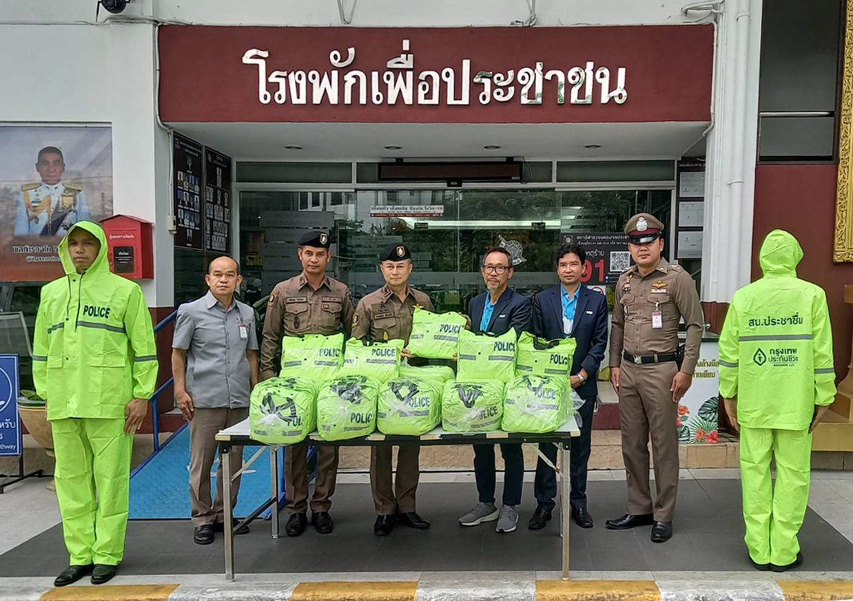 บริษัท กรุงเทพประกันชีวิต จำกัด (มหาชน) ส่งความห่วงใย มอบชุดกันฝนสะท้อนแสง จำนวน 100 ชุด ให้แก่ เจ้าหน้าที่ตำรวจ สน.ประชาชื่น โดยมี พ.ต.อ. ประสพโชค เอี่ยมพินิจ ผู้กำกับการสถานีตำรวจนครบาลประชาชื่น (ที่ 3 จากซ้าย) เป็นผู้รับมอบ เพื่อสนับสนุนความปลอดภัยของเจ้าหน้าที่ในขณะปฏิบัติงานอำนวยความสะดวกแก่ประชาชนในช่วงหน้าฝน ซึ่งกิจกรรมนี้เป็นส่วนหนึ่งในโครงการกรุงเทพประกันชีวิตเพื่อชุมชน ใส่ใจดูแลคุณภาพชีวิตของประชาชนและสังคม เพื่อความสุขที่ยั่งยืน ณ สถานีตำรวจนครบาลประชาชื่น เมื่อเร็ว ๆ นี้