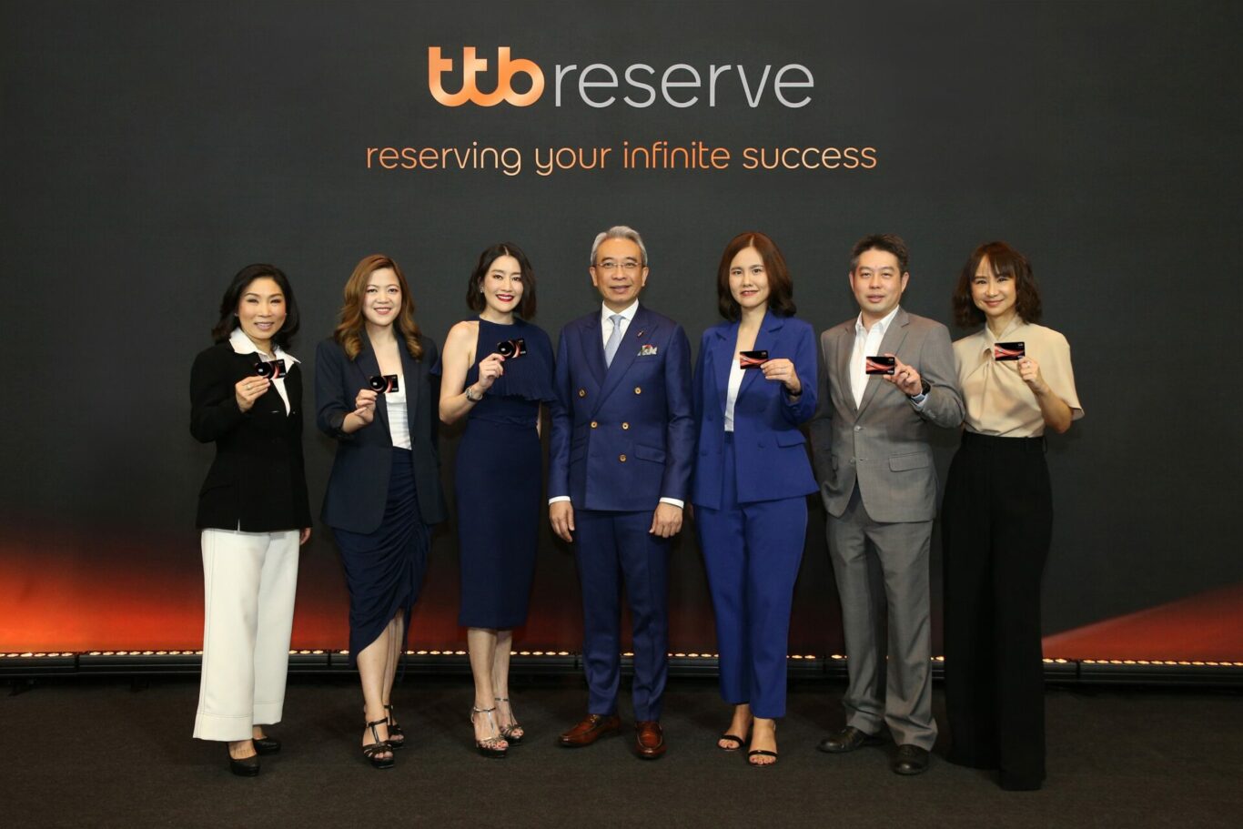 ttb reserve โดย ทีเอ็มบีธนชาต นำโดย นายฐากร ปิยะพันธ์ (กลาง) ผู้จัดการใหญ่ และรักษาการประธานเจ้าหน้าที่บริหารลูกค้าบุคคล พร้อมด้วย นางสาวนันทพร ตั้งเจริญศิริ (ที่ 2 จากซ้าย) รองประธานเจ้าหน้าที่บริหาร หัวหน้าบริหารความสัมพันธ์และประสบการณ์ลูกค้าบุคคล และ นางณัฐวรรณ อภิรัตนพิมลชัย (ที่ 3 จากขวา) รองประธานเจ้าหน้าที่บริหาร หัวหน้ากลยุทธ์ลูกค้าบุคคลและประสบการณ์ลูกค้าช่องทางรวม จัดงาน “ttb reserve อีกขั้นของโซลูชันทางการเงิน สู่ความสำเร็จที่ไปได้ไกลกว่า” พร้อมนำเสนอโซลูชันทางการเงินที่มุ่งตอบโจทย์ลูกค้ากลุ่มมั่งคั่งสูง (Wealth) ผ่านแพลตฟอร์ม ttb reserve ที่ประสานโซลูชันทางการเงินระหว่างผลิตภัณฑ์ต่าง ๆ และสิทธิประโยชน์ของการถือครองบัตรที่คุ้มค่าด้วยเอกสิทธิ์ขั้นสูงสุด ภายใต้คอนเซปต์ “Maximize your infinite wealth for generations” อีกขั้นของโซลูชันทางการเงินที่ตอบโจทย์ทั้งด้านการเงิน การลงทุน และไลฟ์สไตล์ พร้อมการดูแลอย่างใกล้ชิดผ่านผู้ดูแลส่วนบุคคล เพื่อต่อยอดความมั่งคั่งจากรุ่นสู่รุ่นได้ไม่มีที่สิ้นสุด พร้อมกันนี้ได้รับเกียรติจากคุณโสภิตนภา ชุ่มภาณี ร่วมแชร์ประสบการณ์การใช้ชีวิตเหนือระดับกับบัตร ttb reserve ในครั้งนี้ด้วย