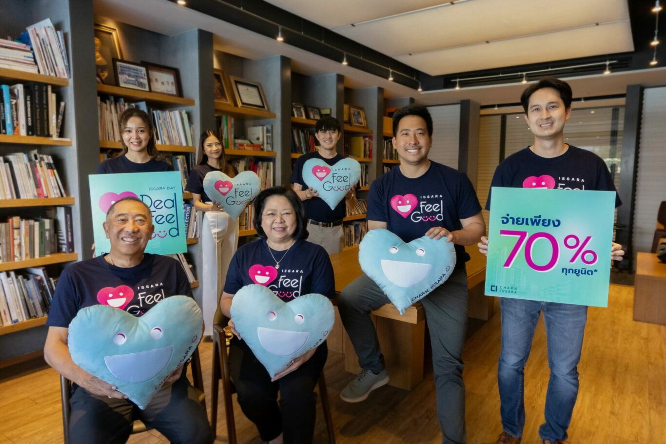 บริษัท ชาญอิสสระ ดีเวล็อปเมนท์ จำกัด (มหาชน) นำโดย นายสงกรานต์ อิสสระ (ที่ 1 จากซ้าย) ประธานเจ้าหน้าที่บริหาร, นางธีราภรณ์ ศรีเจริญวงศ์ (ที่ 2 จากซ้าย) กรรมการผู้จัดการ และ นายดิฐวัฒน์ อิสสระ ผู้ช่วยกรรมการผู้จัดการ (ที่ 2 จากขวา) ส่งแคมเปญการตลาดครั้งใหญ่ในรอบปี “Heart Deal Feel Good” ผนึก 10 โครงการในเครือ ทั้งบ้านเดี่ยวสุดหรู บ้านพักตากอากาศ คอนโดมิเนียม และโรงแรม จัดโปรแรงทุกยูนิตจ่ายเพียง 70% พร้อม On Top สูงสุด 700,000 บาท ตั้งแต่วันนี้ – 31 ต.ค. 66