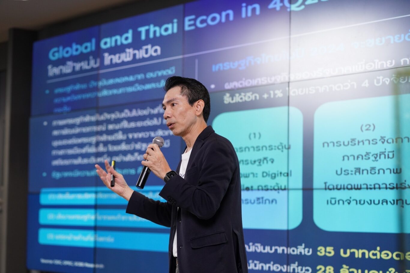 ขณะที่ปัจจุบันเศรษฐกิจไทยชะลอตัวลงมาก แต่อนาคตมีความหวังจากความชัดเจนทางการเมืองและนโยบายกระตุ้นจากภาครัฐ โดยเราประเมินว่าเศรษฐกิจไทยในปี 2567 จะขยายตัวได้ดีกว่าปี 2566 ซึ่งเป็นผลมาจากเสถียรภาพทางการเมืองที่เพิ่มขึ้น มาตรการกระตุ้นเศรษฐกิจจากรัฐบาลเพื่อไทยจะทำให้เศรษฐกิจฟื้นตัวขึ้นได้อีก 1% โดยเราคาดว่าเศรษฐกิจไทยในปี 2567 จะขยายตัวได้ 4.1% (เทียบกับประมาณการเดิมที่ 3%) จากปี 2566 ที่ขยายตัว 2.7%