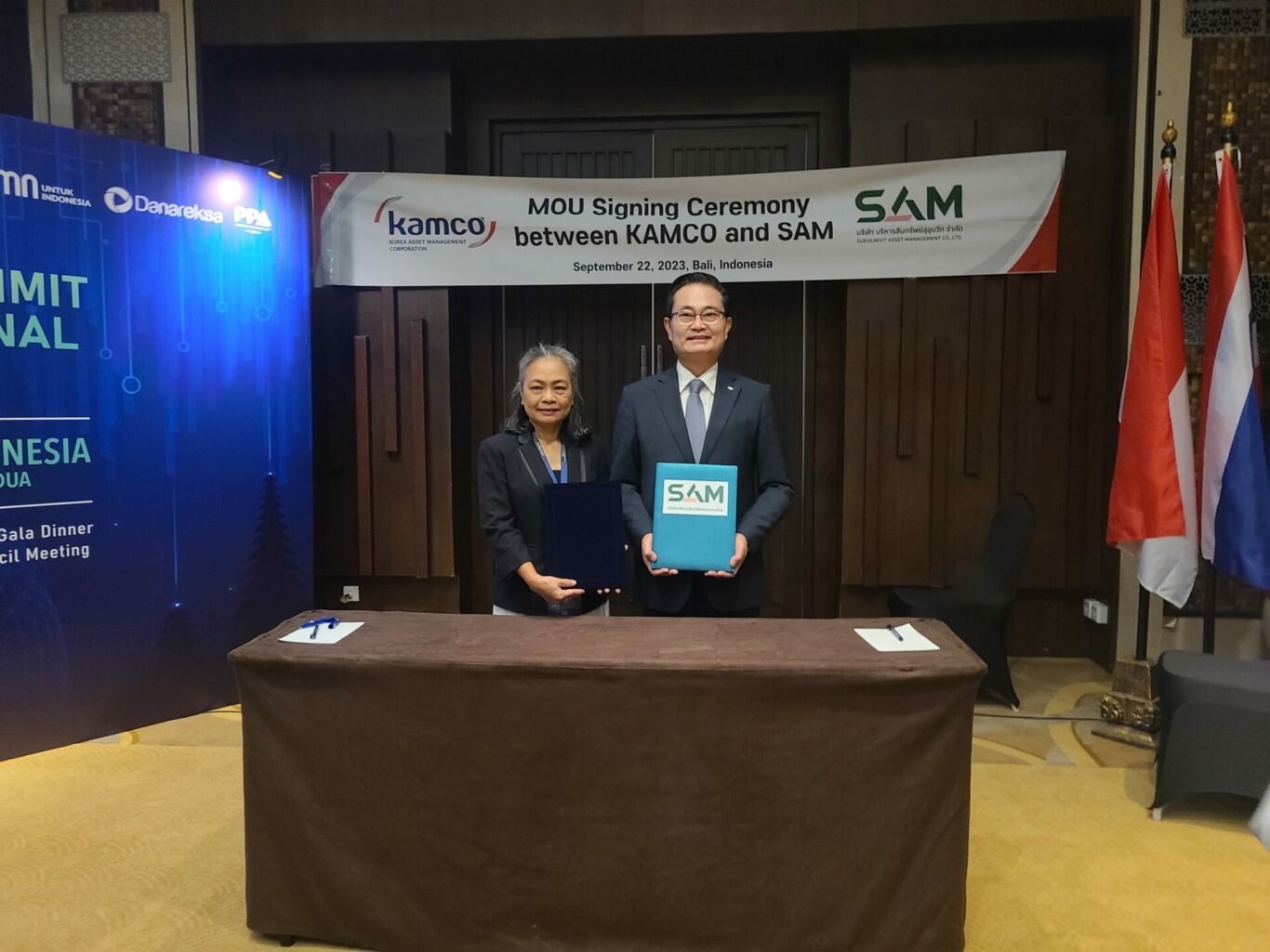 บริษัท บริหารสินทรัพย์สุขุมวิท จำกัด (บสส.) หรือ SAM โดย นางสิรินารถ แน่งอนงค์ รองกรรมการผู้จัดการ บริษัท บริหารสินทรัพย์สุขุมวิท จำกัด (บสส.) หรือ SAM ร่วมลงนามบันทึกความเข้าใจ (MoU) กับ Korea Asset Management Corporation หรือ KAMCO บริษัทบริหารสินทรัพย์ชั้นนำของประเทศเกาหลีใต้ เพื่อขยายระยะเวลาความร่วมมือในการแลกเปลี่ยนประสบการณ์และความรู้ในการแก้ไขสินทรัพย์ด้อยคุณภาพระหว่างกันออกไปอีก 3 ปี ณ เกาะบาหลี ประเทศอินโดนีเซีย