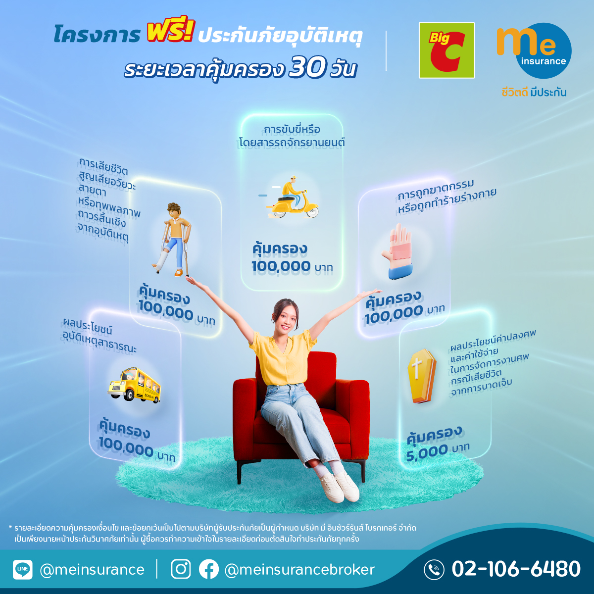 สำหรับผู้ที่สนใจรับสิทธิ์ สามารถศึกษาข้อมูลเพิ่มเติมทาง Facebook Me Insurance Broker หรือ Line @meinsurance หรือ Call Center โทร. 0-2106-6480