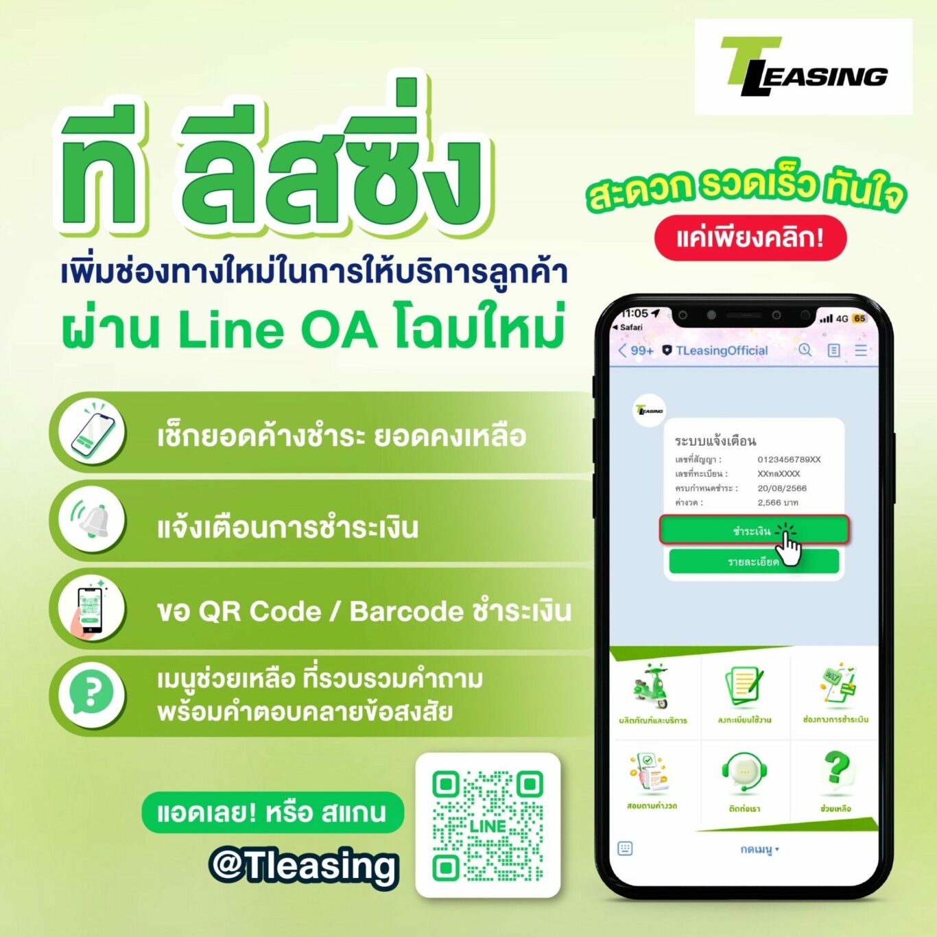 นายมงคล กล่าวว่า นอกจากจะแตกไลน์ขยายธุรกิจสินเชื่อรถมอเตอร์ไซต์ ที ลีสซิ่ง ยังรักษาฐานลูกค้าสินเชื่อเช่าซื้อเครื่องมือแพทย์ที่บริษัทฯ ให้บริการอยู่ ทั้งในรูปแบบนิติบุคคลและบุคคลธรรมดาให้มีทิศทางที่ดีอย่างต่อเนื่อง พร้อมมีความมุ่งมั่นในการพัฒนาระบบเทคโนโลยีให้ทันสมัย เพื่อตอบโจทย์ไลฟ์สไตล์ของผู้บริโภคที่ต้องการความสะดวกสบายในยุคดิจิทัล โดยล่าสุดได้พัฒนา Line Official Account: @tleasing โฉมใหม่! เพื่อเพิ่มช่องทางในการให้บริการลูกค้าได้สะดวกรวดเร็วมากยิ่งขึ้น โดยสามารถตรวจสอบค่างวดได้ง่าย ๆ ทั้งการเช็กยอดค้างชำระ ยอดคงเหลือ แจ้งเตือนการชำระเงิน ขอ QR Code / Barcode ชำระเงิน พร้อมเมนูช่วยเหลือที่รวบรวมคำถามคำตอบที่สามารถให้ความเข้าใจและคลายข้อสงสัยให้แก่ลูกค้าได้เป็นอย่างดีอีกด้วย