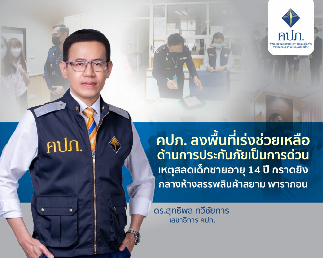 คปภ. ลงพื้นที่เร่งช่วยเหลือด้านการประกันภัยเป็นการด่วน เหตุสลดเด็กชายอายุ 14 ปี กราดยิงกลางห้างสรรพสินค้าสยาม พารากอน