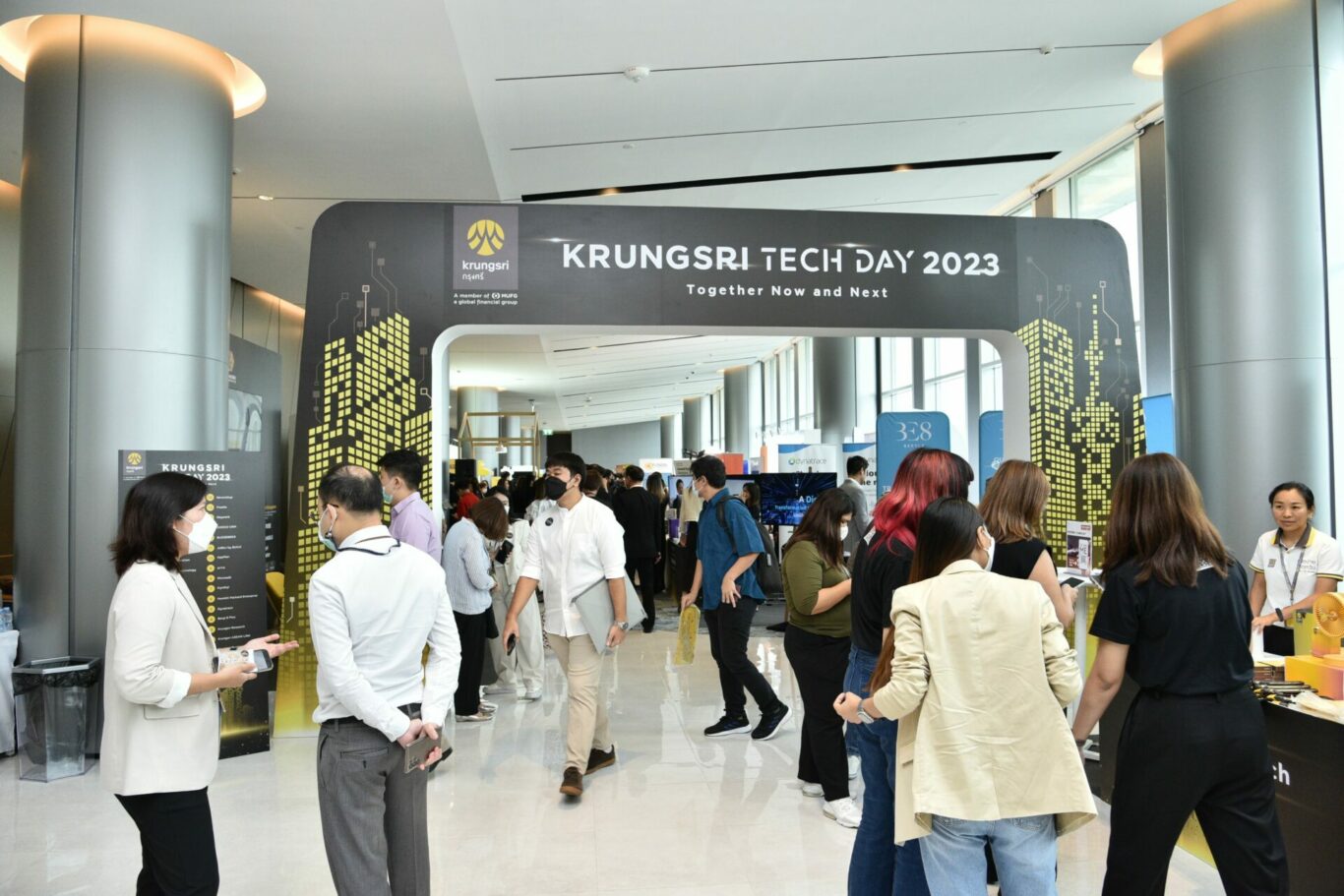โดยกิจกรรมภายในงาน Krungsri Tech Day 2023 ครั้งนี้ เป็นการแนะนำให้รู้จักกับเทคโนโลยีและโซลูชันทางการเงินแห่งอนาคต อาทิ การให้บริการทางการเงินแบบเปิด (Open Banking) การชำระสินค้าด้วยการสแกนใบหน้า การโอนถ่ายข้อมูลผ่านเสียง และเทคโนโลยีปัญญาประดิษฐ์อย่าง Chatbot และ Generative AI รวมถึงจัดแสดงผลิตภัณฑ์และบริการของกรุงศรีที่ตอบโจทย์ธุรกิจและการใช้ชีวิตของทั้งลูกค้ารายย่อยและลูกค้าธุรกิจ โครงการพิเศษที่ทาง กรุงศรี นิมเบิล ซึ่งเป็นฮับในการสร้างและดูแลโซลูชันด้านดิจิทัลเทคโนโลยี ร่วมมือกับ คณะแพทยศาสตร์ศิริราชพยาบาล ภาควิชาจิตเวชศาสตร์ ในการใช้เทคโนโลยี Innovation Project: VR มาต่อยอดให้เกิดประโยชน์ทางด้านการแพทย์ เพื่อรักษาผู้ป่วยโรคกลัว (Phobia) รวมถึง กรุงศรี ฟินโนเวต ผู้นำด้านการสนับสนุนและลงทุนในเทคโนโลยีนวัตกรรมและสตาร์ทอัพทั้งในระดับประเทศและภูมิภาค ร่วมแนะนำการลงทุนในกองทุนและกลุ่มสตาร์ทอัพที่น่าสนใจ นอกจากนี้ ยังมีการนำเสนอโซลูชันสุดล้ำจากพันธมิตรบริษัทด้านเทคโนโลยีระดับโลก ร่วมด้วยสตาร์ทอัพมาแรงแห่งยุคอีกมากมาย