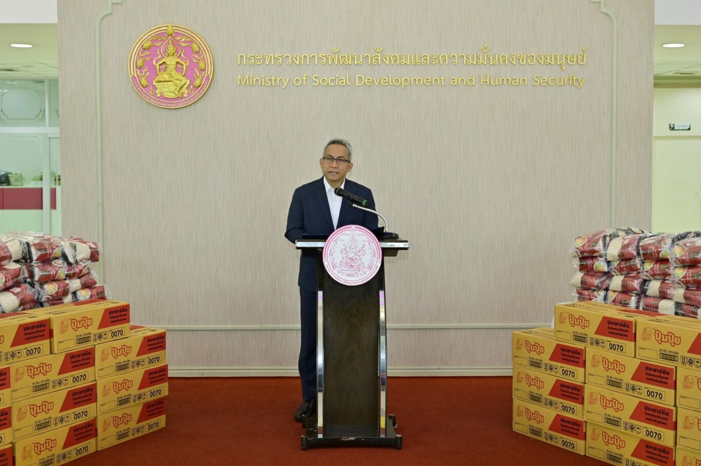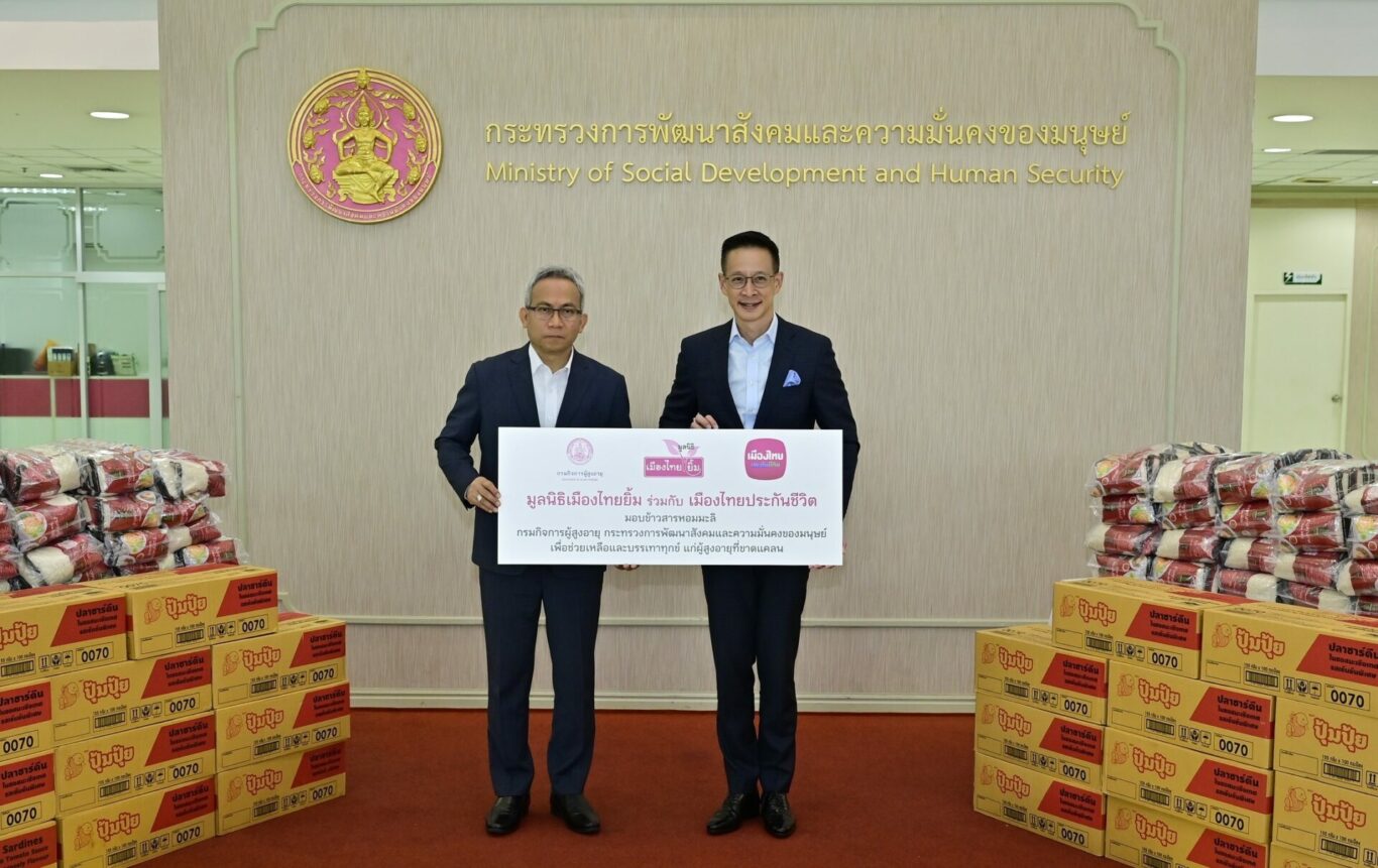 นายสาระ ล่ำซำ ประธานเจ้าหน้าที่บริหาร บริษัท เมืองไทยประกันชีวิต จำกัด (มหาชน) และ นางพิตราภรณ์ บุณยรัตพันธุ์ รองประธานกรรมการ มูลนิธิเมืองไทยยิ้ม ร่วมมอบเครื่องบริโภค ได้แก่ ข้าวสารและปลากระป๋อง ให้แก่ นายอนุกูล ปีดแก้ว ปลัดกระทรวงการพัฒนาสังคมและความมั่นคงของมนุษย์ เพื่อส่งเสริมและสนับสนุนการบริหารจัดการของทางภาครัฐ ส่งมอบให้กับผู้สูงอายุและกลุ่มเปราะบางที่ประสบปัญหาความเดือดร้อนทางสังคม โดยเฉพาะผู้ได้รับผลกระทบจากอุทกภัยในพื้นที่ต่าง ๆ