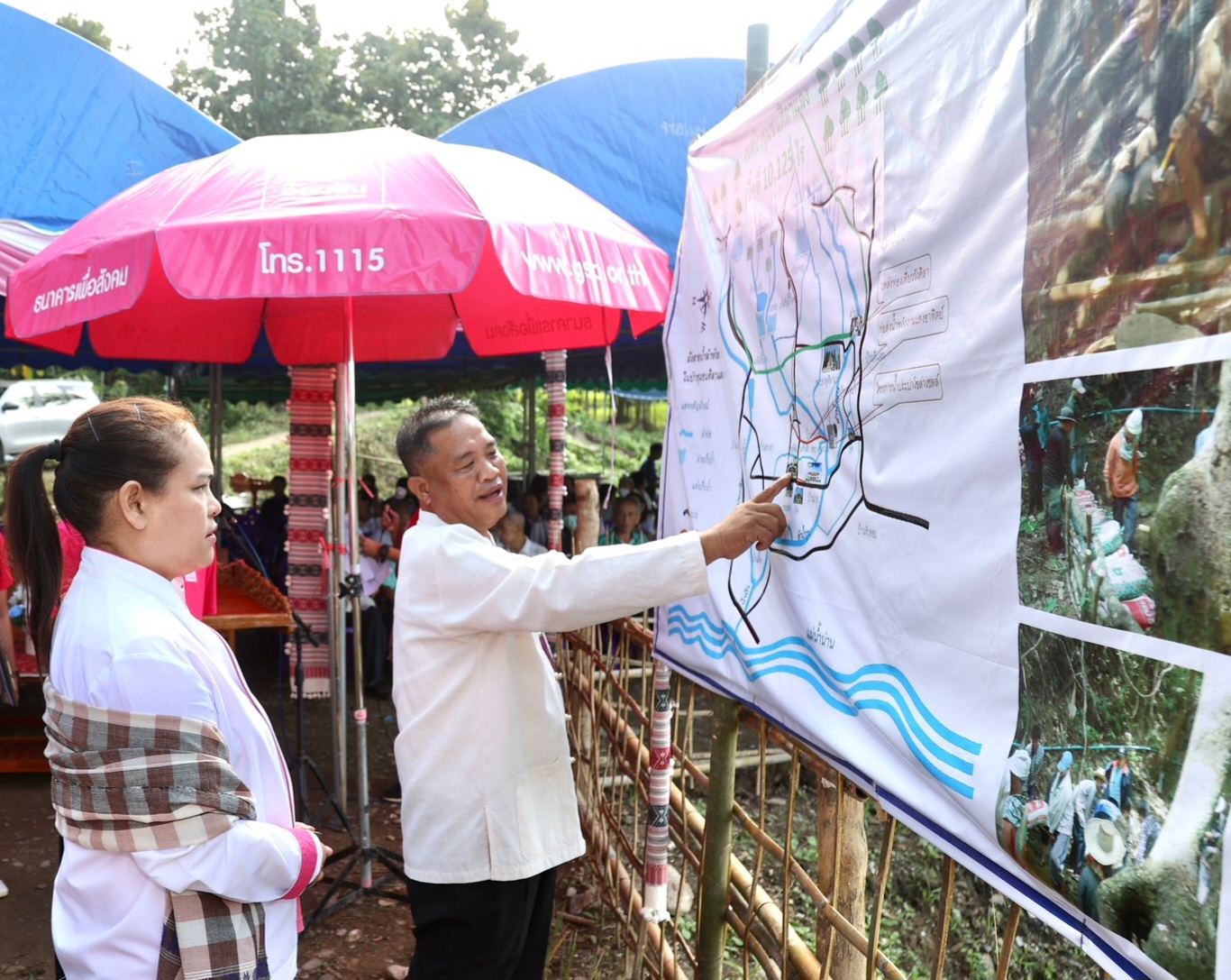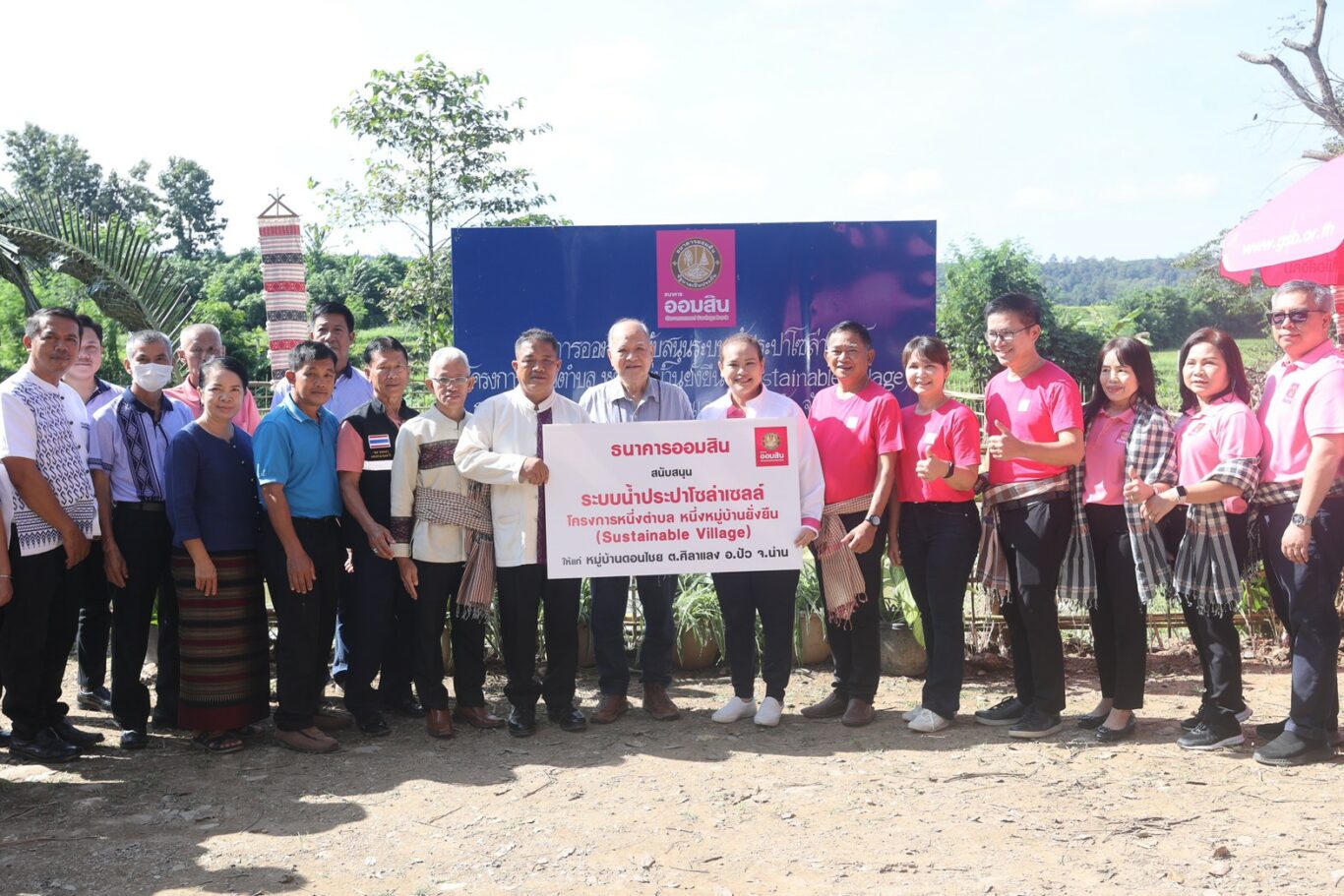 นางสาววชิรา การสุทธิ์ ผู้ช่วยผู้อำนวยการธนาคารออมสิน สายงานความยั่งยืน พร้อมคณะ ลงพื้นที่ส่งมอบการสนับสนุนระบบน้ำพลังงานแสงอาทิตย์ ให้แก่ชุมชนหมู่บ้านดอนไชย อ.ปัว จ.น่าน ที่ประสบปัญหาขาดแคลนน้ำอุปโภคบริโภค