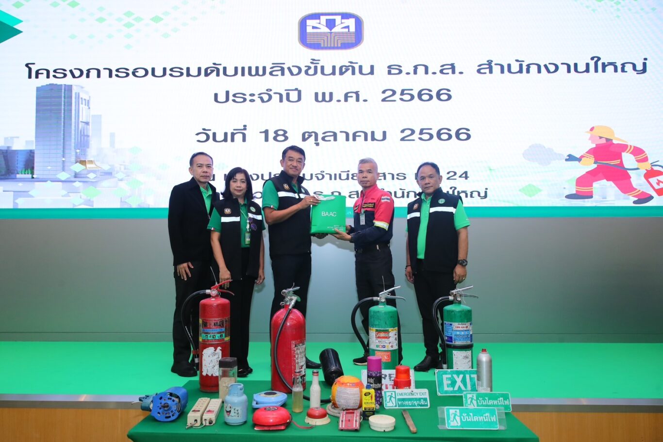อันเป็นการลดความรุนแรงและความสูญเสียในชีวิตและทรัพย์สิน โดยมีคณะวิทยากรจากสถานีดับเพลิงบางเขน สำนักงานป้องกันและบรรเทาสาธารณภัย กรุงเทพมหานคร เป็นวิทยากร ณ ห้องประชุมจำเนียรสาร ชั้น 24 อาคารทาวเวอร์ ธ.ก.ส. สำนักงานใหญ่