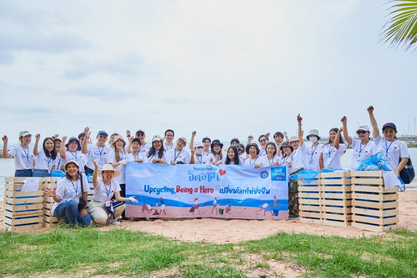 บริษัท ไทยประกันชีวิต จำกัด (มหาชน) ตระหนักถึงความสำคัญของการดูแลรักษาสิ่งแวดล้อม ตามเป้าหมายการพัฒนาสู่ความยั่งยืน (SDGs) มิติด้านสิ่งแวดล้อม จึงได้จัดกิจกรรม Upcycling, Being a Hero เปลี่ยนโลกให้ยั่งยืน นำพนักงานไทยประกันชีวิตจิตอาสาจำนวน 29 คน ร่วมกิจกรรมเก็บขยะบริเวณชายหาดบ้านอำเภอ อ.สัตหีบ จ.ชลบุรี พร้อมเรียนรู้และลงมือประกอบถังขยะจากไม้พาเลทรีไซเคิล เพื่อเป็นส่วนหนึ่งในการรณรงค์การทิ้งขยะให้ถูกที่