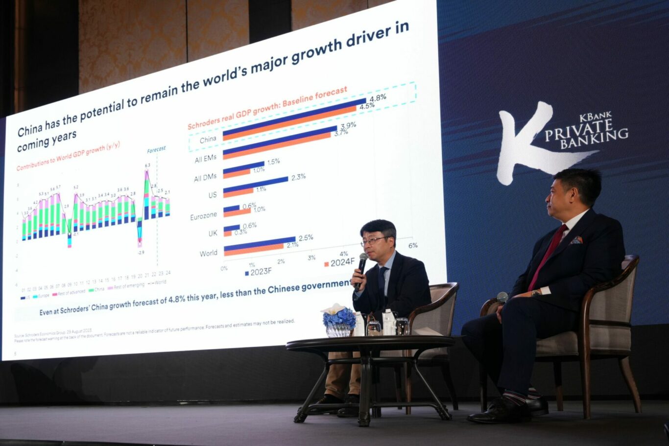 KBank Private Banking (เคแบงก์ ไพรเวทแบงกิ้ง) ประเมินเศรษฐกิจโลกในโค้งสุดท้ายของปียังอยู่ในแนวโน้มหดตัว ด้านตลาดทุนยังคงต้องเผชิญกับความท้าทายรอบด้าน ราคาสินทรัพย์ในตลาดแทบทุกประเภทยังคงผันผวน นักลงทุนอาจจะไม่สามารถสร้างผลตอบแทนตามที่คาดหวังได้จากการลงทุนในตลาด จึงแนะนำให้นักลงทุนเพิ่มสัดส่วนการลงทุนในสินทรัพย์นอกตลาด (Private Asset) ล่าสุดร่วมกับ KAsset และ Schroders Capital นำเสนอโอกาสการลงทุนหุ้นนอกตลาดในจีนที่มีมูลค่าการระดมทุนสูงเป็นอันดับที่ 2 ของโลก ผ่านกองทุนเปิดเค ไชน่า ไพรเวทอิควิตี้ 23A ห้ามขายผู้ลงทุนรายย่อย (K-CHAPE23A-UI) ที่เน้นลงทุนในกลุ่มเทคโนโลยี สุขภาพ และการบริโภคที่รองรับผู้บริโภคจีนจำนวนมหาศาล และสอดคล้องกับแผนการพัฒนาของรัฐบาลจีน คาดว่าจะมีศักยภาพและกลายมาเป็นกลุ่มบริษัทที่เป็นผู้นำตลาดในอนาคต เพื่อเพิ่มโอกาสรับผลตอบแทนที่มากกว่า