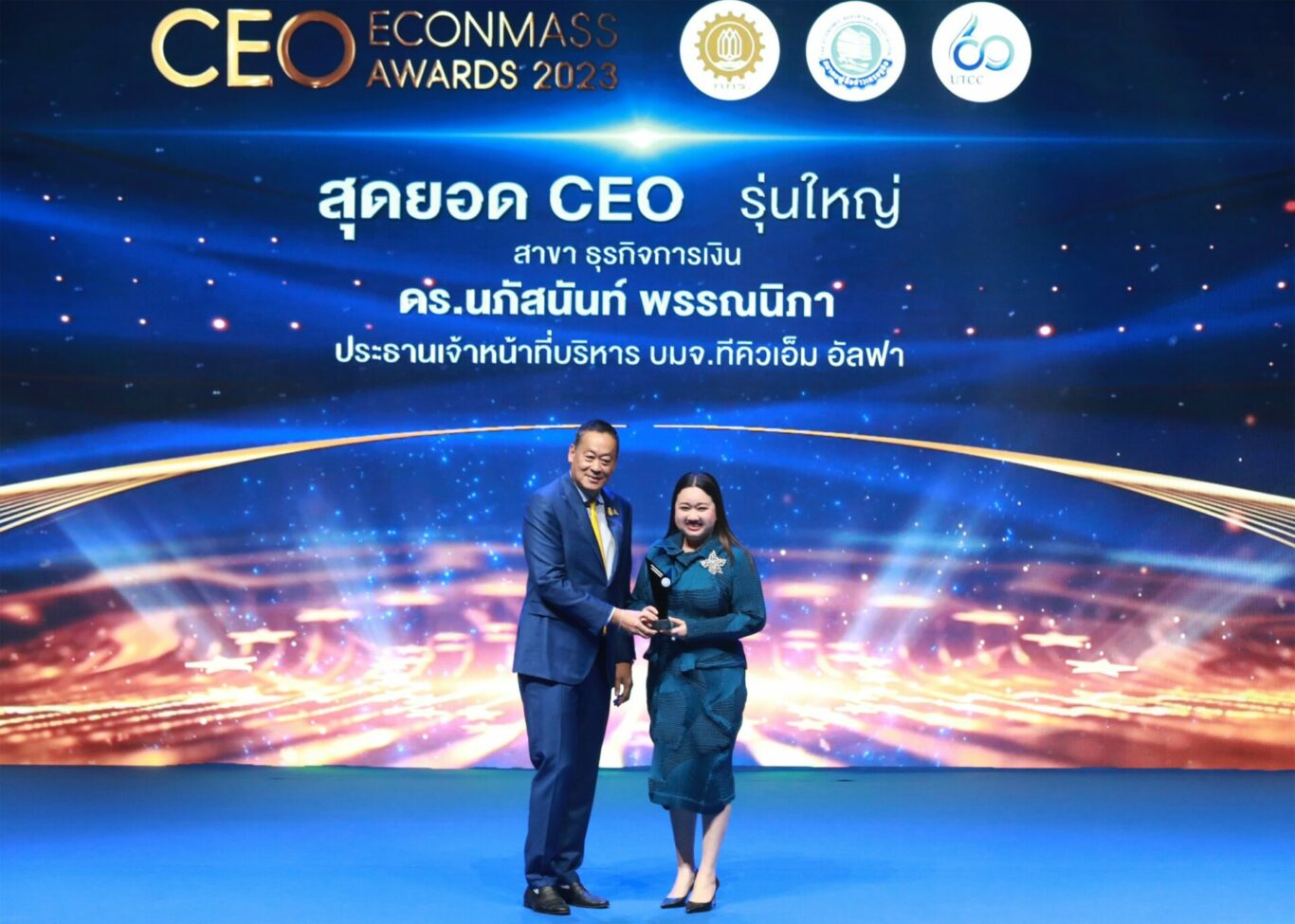ดร.นภัสนันท์ พรรณนิภา ประธานเจ้าหน้าที่บริหาร บริษัท ทีคิวเอ็ม อัลฟา จำกัด (มหาชน) หรือ TQMalpha รับรางวัล ‘CEO Econmass Awards 2023′ ประเภทซีอีโอรุ่นใหญ่ สาขาธุรกิจการเงิน จากโครงการคัดเลือกสุดยอดผู้นำองค์กรภาคเอกชน (สุดยอดซีอีโอ) ประจำปี 2566 จัดโดยสมาคมผู้สื่อข่าวเศรษฐกิจ ร่วมกับ คณะกรรมการร่วมภาคเอกชน 3 สถาบัน (กกร.) และมหาวิทยาลัยหอการค้าไทย เพื่อสร้างต้นแบบผู้นำองค์กรภาคธุรกิจที่ประสบความสำเร็จ และสร้างแรงบันดาลใจในการพัฒนาศักยภาพ เสริมสร้างขีดความสามารถในการแข่งขันของประเทศ เพื่อประโยชน์ต่อเศรษฐกิจ การลงทุน และสังคมทุกภาคส่วน โดยได้รับเกียรติจาก ฯพณฯ นายกรัฐมนตรี เศรษฐา ทวีสิน เป็นประธานมอบรางวัล ในวันที่ 25 ตุลาคม 2566 ณ โรงละครอักษรา คิงเพาเวอร์
