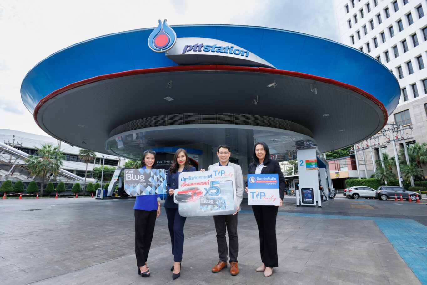 นายพลรัตน์ เอกโยคยะ รองกรรมการผู้จัดการใหญ่ ด้านการขายและการตลาด 2 นางสาวสุภาพ ประดับการ รองกรรมการผู้จัดการใหญ่ ด้านการขายและการตลาด 1 บริษัท ทิพยประกันภัย จำกัด (มหาชน) ผนึกกำลังกับ นางสาวชมพูนุท ดำรงเกียรติศักดิ์ ผู้จัดการส่วนบริหารความสัมพันธ์ลูกค้า บริษัท ปตท. น้ำมันและการค้าปลีก จำกัด (มหาชน) นางสาวภัทรธิรา บุณยะประดับ พนักงานวิเคราะห์และวางแผนส่วนบริหารความสัมพันธ์ลูกค้า บริษัท ปตท. น้ำมันและการค้าปลีก จำกัด (มหาชน) มอบสิทธิพิเศษสำหรับสมาชิก Blue Card