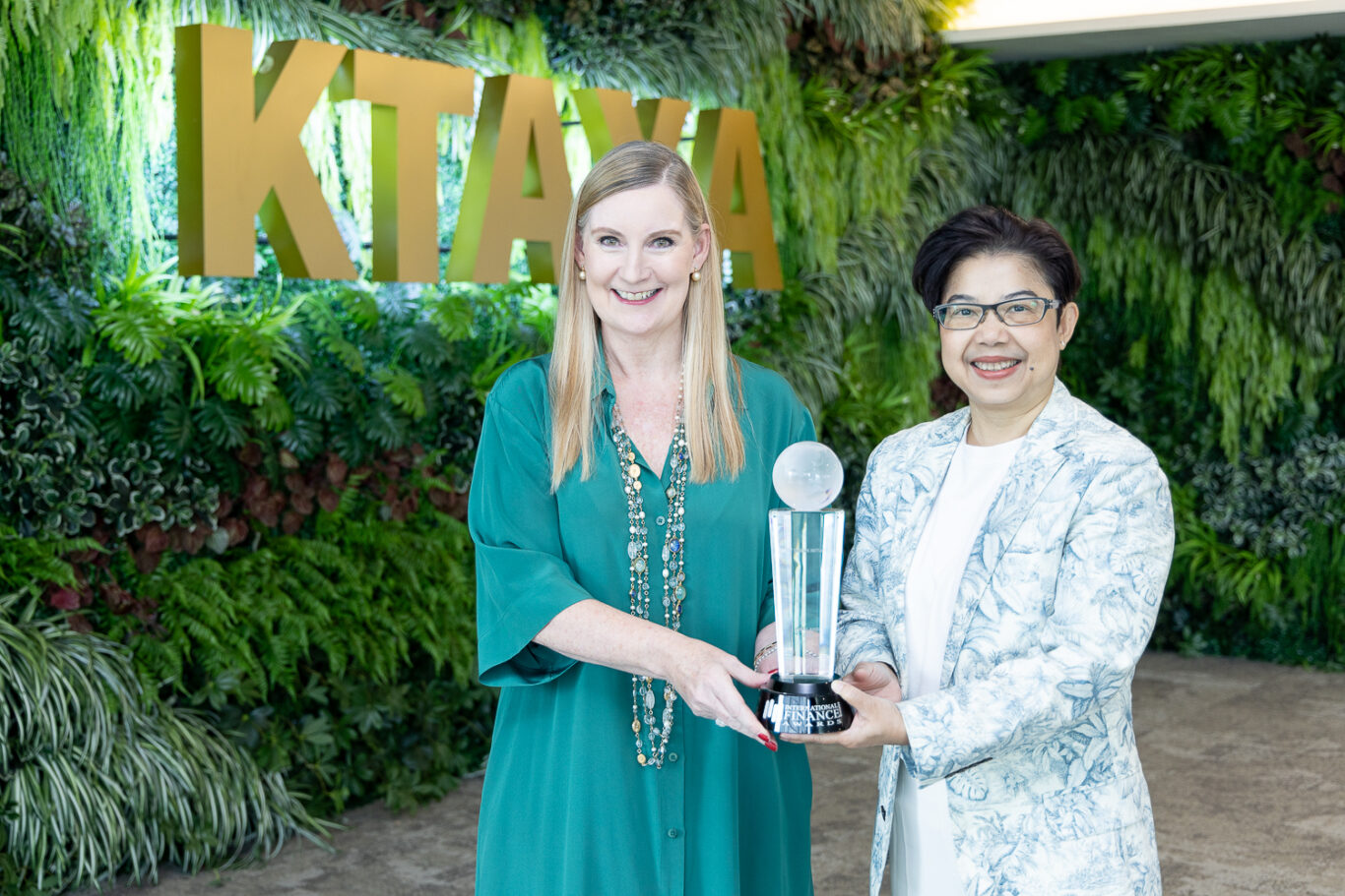 บมจ.กรุงไทย-แอกซ่า ประกันชีวิต ในฐานะผู้นำด้านบริษัทประกันที่ใส่ใจสิ่งแวดล้อม หรือ Green Insurer โดย นางแซลลี่ โอฮาร่า ประธานเจ้าหน้าที่บริหาร (ซ้าย) และ นางสาวบุปผาวดี โอวรารินท์ ประธานเจ้าหน้าที่บริหาร ฝ่ายทรัพยากรบุคคล และภาพลักษณ์องค์กรและการสื่อสารองค์กร (ขวา) คว้ารางวัลใหญ่ระดับนานาชาติ 3 ปีซ้อน จาก International Finance Awards 2023 ในสาขา Best Green Initiative ซึ่งรางวัลดังกล่าวถือเป็นความภาคภูมิใจของบริษัทฯ ที่ประสบความสำเร็จในการช่วยเหลือสังคม และใส่ใจสิ่งแวดล้อมอย่างยั่งยืนตลอดมา ซึ่งสอดคล้องเป้าหมายหลักของบริษัทฯ ที่มุ่งมั่นเคียงข้างทุกความเชื่อมั่น ดูแลกันตลอดไป