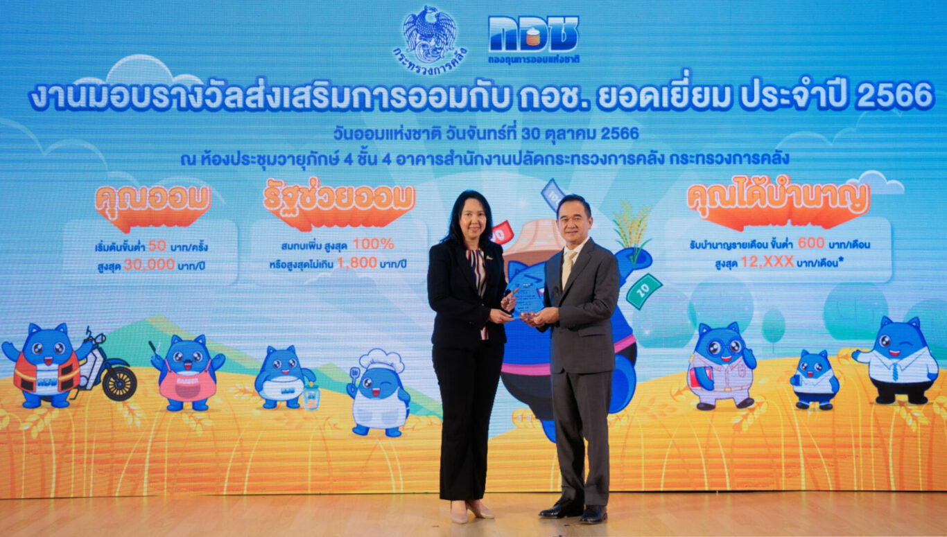 รางวัลส่งเสริมการออมกับ กอช.แบ่งเป็น 6 ประเภท โดย บริษัท ทิพยประกันภัย จำกัด (มหาชน) ได้รับประเภทรางวัลเกียรติยศ เป็นองค์กรที่ให้ความร่วมมือสนับสนุนและส่งเสริมการออมเป็นที่ประจักษ์ชัด ส่วนรางวัลประเภทอื่นๆ ได้แก่ ประเภทรางวัลหน่วยงานการศึกษา ประเภทรางวัลระดับประเทศ ประเภทรางวัลระดับจังหวัด ประเภทรางวัลระดับเครือข่ายที่มีผลการดำเนินงานการส่งเสริมวินัยการออมดีเด่น และรางวัลชนะเลิศการประกวดแต่งเพลง “ออมกับกอช.”
