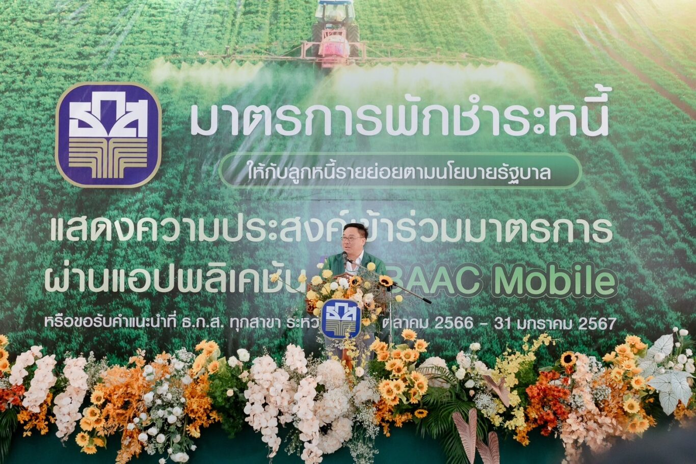 โดยมีลูกค้า ธ.ก.ส. ที่ได้รับสิทธิ์ตามมาตรการกว่า 2 ล้านราย ยอดหนี้ทั้งหมดจำนวน 283,000 ล้านบาท ซึ่ง ธ.ก.ส. ได้เปิดบูธให้บริการตรวจสอบสิทธิ์และแจ้งความประสงค์เข้าร่วมมาตรการผ่านแอปพลิเคชัน “BAAC Mobile” ตั้งแต่วันที่ 1 ตุลาคม 2566 – 31 มกราคม 2567 โดยติดตามขั้นตอนการปฏิบัติงาน ทั้งการตรวจสอบสิทธิ์ การตรวจสุขภาพหนี้ การทำเอกสารข้อตกลงต่อท้ายสัญญา และการฟื้นฟูศักยภาพในการประกอบอาชีพ ภายใต้หลักการ “ตลาดนำ นวัตกรรมเสริม เพิ่มรายได้” พร้อมเติมสินเชื่อเสริมสภาพคล่องในการประกอบอาชีพ วงเงินไม่เกิน 100,000 บาท เพื่อส่งเสริมให้เกษตรกรมีรายได้เพิ่มขึ้นในระหว่างการพักชำระหนี้และป้องกันการก่อหนี้นอกระบบ โดยมีคณะผู้บริหารและพนักงาน ธ.ก.ส. ในพื้นที่และเกษตรกรลูกค้า เข้าร่วมกิจกรรมกว่า 1,000 คน ณ อำเภอแก่งคอยและอำเภอพระพุทธบาท จังหวัดสระบุรี เมื่อวันที่ 28 กันยายน 2566